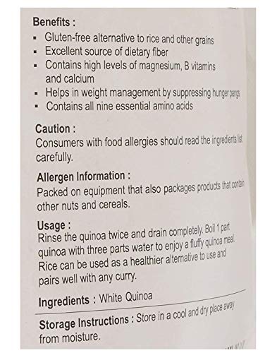 Gluten-free alternative to rice and other grains excellent source of dietary fibre contains high level of magnesium b vitamins and calcium helps in weight management by suppressing hunger pangs.