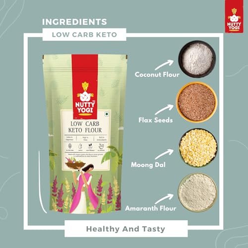 Nutty Yogi Low Carb Keto Flour Pack of Four | Keto Friendly | Gluten Free | Low Gi Baking Indian Bread | Good for Diet | Freshly made in small batches 400x4 = 1600 Gm
