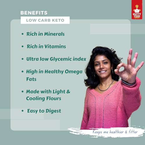 HomeGroceryCookingOrganic Flours, Rice & PulsesNutty Yogi Low Carb Keto Flour Pack of Four | Keto Friendly | Gluten Free | Low Gi Baking Indian Bread | Good for Diet | Freshly made in small batches 400x4 = 1600 Gm