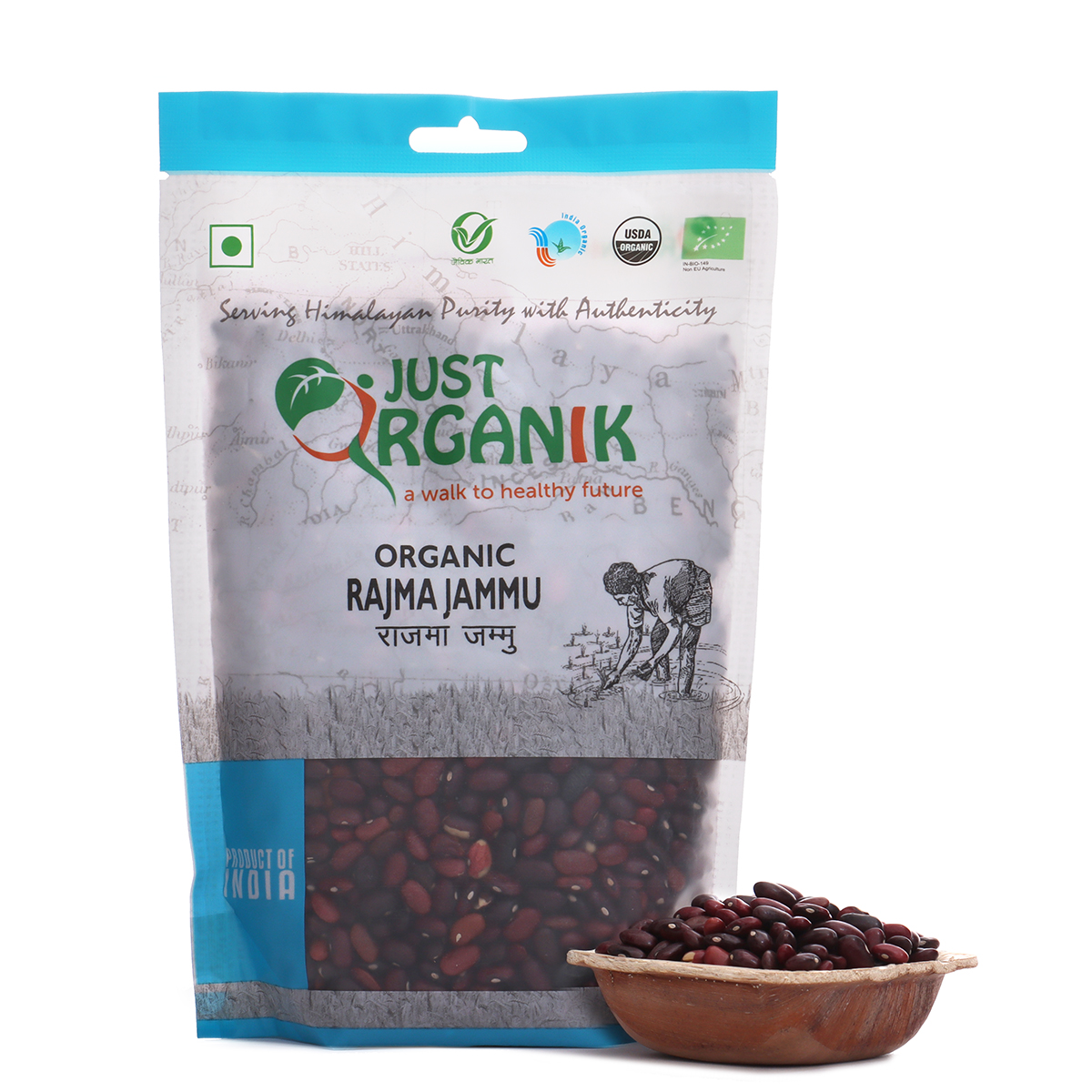 100% ORGANIC NO GMO, NO CHEMICALS, NO PESTICIDE INDIA ORGANIC, USDA CERTIFIED These small red kidney beans are delicious in taste and get cooked fast. Rajma Jammu is famous all over the Himalayan region and its foothills for its characteristics aroma and subtle taste. These Rajma beans are fully loaded with amino acids and proteins and are said to be rich source of carbohydrates, dietary fiber, fatty acids, certain vitamins and minerals like magnesium, molybdenum, potassium, sodium, copper, iron, phosphorous, etc.. Just Organik Rajma Jammu come out best when soaked for about 4-5 hours prior to cooking.