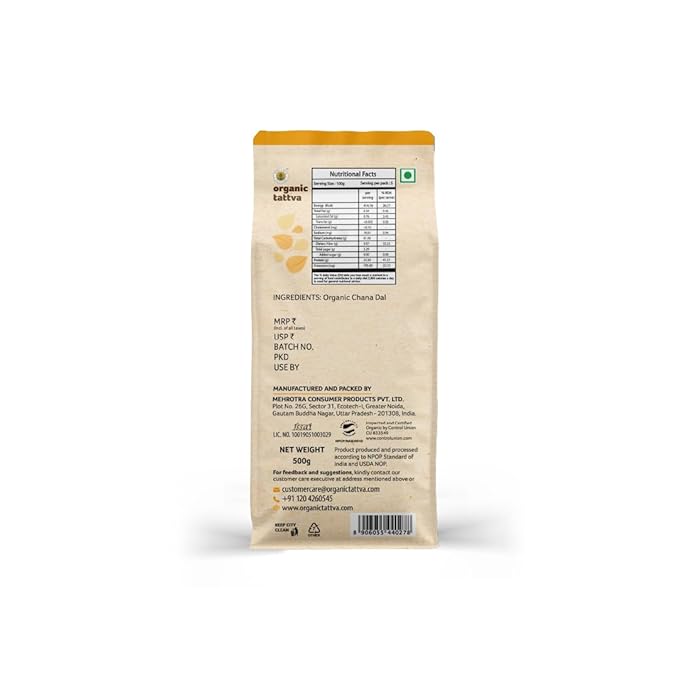 Organic Tattva Besan, crafted from 100% Chana Dal without any pesticides or chemicals. This premium quality flour is rich in protein and processed in-house at our state-of-the-art facility, ensuring consistent quality through rigorous checks. Naturally gluten-free, its perfect for a variety of traditional Indian dishes such as Kadhi, laddu, and dhokla. Experience the pure taste and health benefits of Organic Tattva Besan in your kitchen!!
