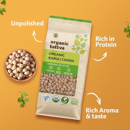 Organic Tattva Kabuli Chana or white chick peas from Organic Tattva are huge in size and superb to taste. This legume is very popular for its high nutritive value. It is used to make the delicious chole spicy gravy from the punjabi cooking.