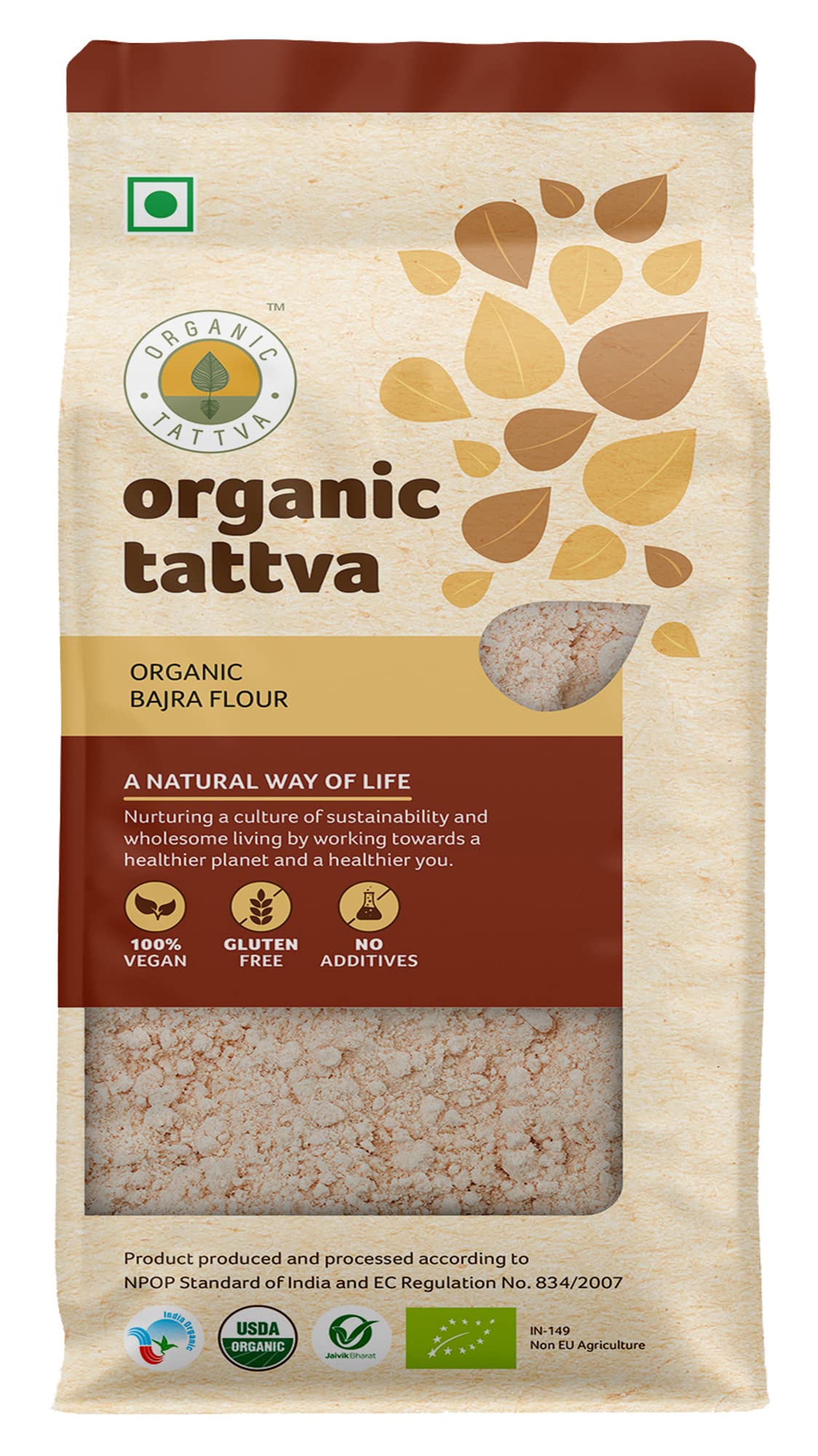 Organic Tattva Organic Bajra (Pearl Millet) Gluten Free Flour/Atta 500 Gram | Rich in Magnesium Iron Calcium and Fiber