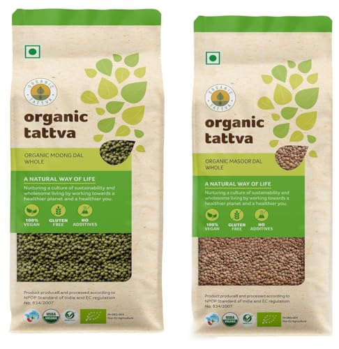 Organic Tattva Organic Green Moong Whole / Sabut Gluten Free and Unpolished Dal 1 KGOrganic Tattva is a leading brand in the category with perstside fre organic process harvesting and packed in a factory where products are untouched by hands trusted by millions.Organic Tattva Organic Masoor Dal Whole / Sabut 500gOur Mission: Our brand mission is to help people live a healthier wholesome life by providing them with a variety of 100 percent certified authentic organic foods. We value honesty integrity and continual self-improvement. We are committed to a sustainable environment zero-additive foods and complete customer-satisfaction. Brand philosophy: The brand organic tattva is based on the principles of health ecology fairness and care. At organic tattva the team works with accredited organic farmers who do not use fertilizers pesticides and genetically modified seeds so that their consumers can enjoy the benefits of nature and relish nutritious healthy pure and chemical-free food an important factor contributing to overall wellbeing.