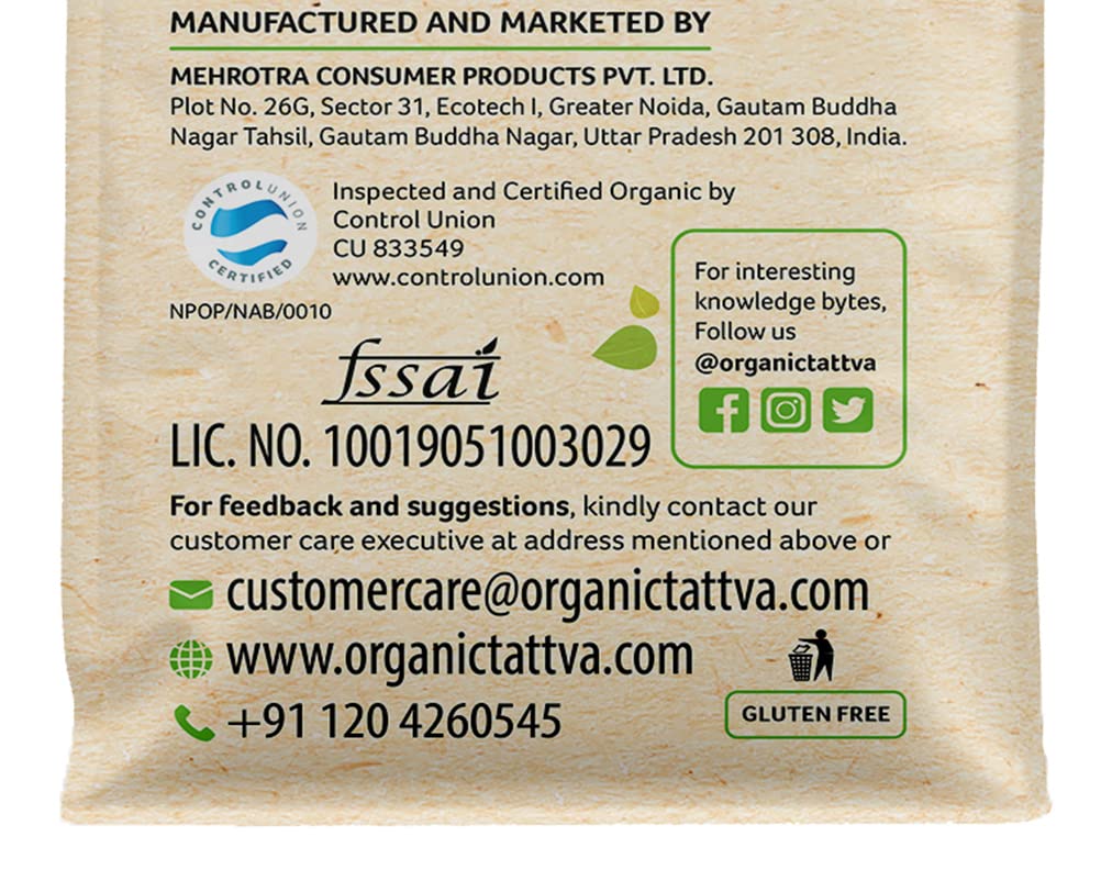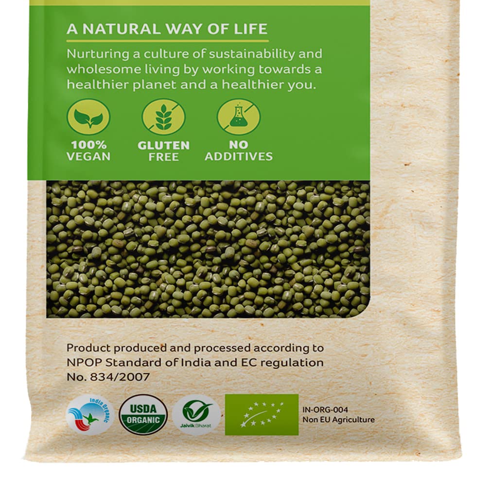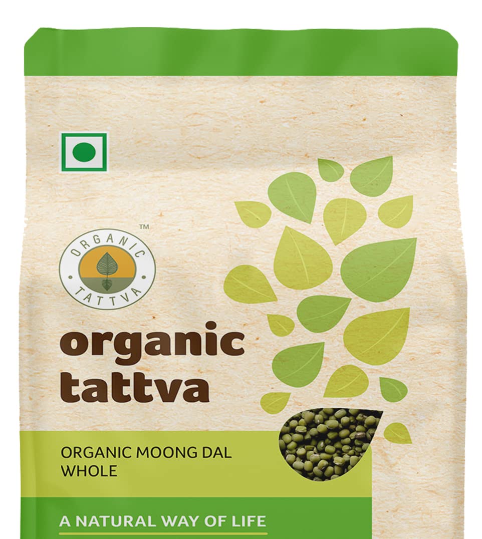 Organic Tattva's Organic Green Moong Dal Sabut / Whole is organic certified Gluten Free and free from any preservatives or pesticides so it's full of daily essential nutrients iron calcium and protein. Along with these nutrients a bowl of Organic Moong Dal Whole also contains dietary fibres sodium and all the other nutrients that are required for your body. A 100g serving of Organic Moong Dal Whole contains 0g trans-fat and 0g sugar. The calorie count per serving of Organic Moong Dal Whole is 349. If leading a healthy life is your mantra then switch to Organic Moong Dal Whole by Organic Tattva today! For most Indians comfort food is always linked to easy-to-cook homemade meals and what can be the most convenient and quick to prepare dal. A staple in the Indian diet Green Moong dal is a good source of protein. Essential in every household Organic Tattva Green Moong dal is organic and unpolished as it does not undergo any artificial polishing with water oil or leather thereby retaining its goodness and wholesomeness. The 5-step process ensures that Organic tattva Green Moong dal grains are uniform and of premium quality giving you an all-natural and authentic taste. So whenever you are in the mood to cook something easy delicious healthy dive into the scrumptious taste of organic tattva pulses and enjoy a lovely meal! Explore Organic Tattva Organic Pulses range - Toor dal Chana dal Moong dal Green Moong Masoor dal Masoor Small dal Masoor Whole dal Kali Masoor dal Urad dal Urad Whole dal Urad Kali Kabuli Chana Kala Chana Matki (Moth bean) and Rajma. Storage: Store in a cool and dry place. Transfer contents in an airtight container after opening. Organic Tattva moong whole is greener medium sized and had a great traditional taste since organically grown using traditional seeds and processed traditionally. It is machine cleaned and handpicked before packing to ensure its purity and hygiene healthier tastier.