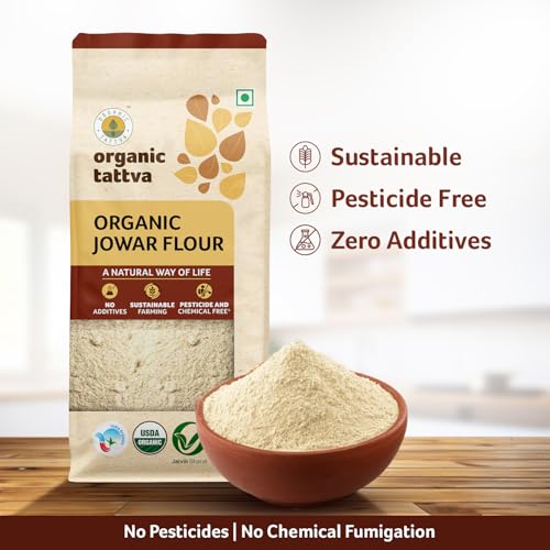 Organic Jowar also known as Sorghum flour is a healthy atta from the organic abode of Organic Tattva. It is widely accepted in the west now because of being gluten free. This flour is good for people suffering from celiac. It has higher content of protein. In India it is used to make jowar ki roti in villages as well as urban areas. Sometimes it is also mixed with other nutritious flours to make multi grain flour. Organic Tattva's Organic Jowar flour is good to use in baking products as well. Because of its bland flavour it doesn't add a distinctive to the dish. In the west it is commonly used in cakes muffins and breads. It is a good source of essential nutrients like calcium iron phosphorous potassium and all the other nutrients that are required for the body. It is also used to make porridge chapattis and pancakes. Get this organically produced flour for making healthy snack items. It's pure unadulterated and 100 percent organic. If leading a healthy life is your mantra then switch to Organic Jowar Flour (500g) by Organic Tattva today! How to include it in your daily diet Roti: The easiest way to incorporate jowar in your daily diet is through rotis. You can make multi grain flour by mixing 50 per cent jowar and 50 per cent of whole wheat bajra ragi and soya Idli/dosa: Jowar can also be added to the rice batter prepared for making idli and dosa. You can add jowar to the rice batter in the ratio of 2:1 (jowar and rice respectively).