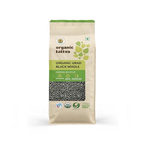 Organic Urad Dal Black Whole is also known as the queen of all dals is a perfect compliment to your healthy diet. Organic Urad Dal Black Whole has greyish black beans and is packed with nutrients. Organic Tattva's Organic Urad Dal Black Whole is full of iron calcium and protein. Along with these nutrients a bowl of Organic Urad Dal Black Whole also contains dietary fibres sodium and all the other nutrients that are required for your body. A 100g serving of Organic Urad Dal Black Whole contains 0g trans fat and 0g sugar. The calorie count per serving of Organic Urad Dal Black Whole is 293.12. If leading a healthy life is your mantra then switch to Organic Urad Dal Black Whole by Organic Tattva today!