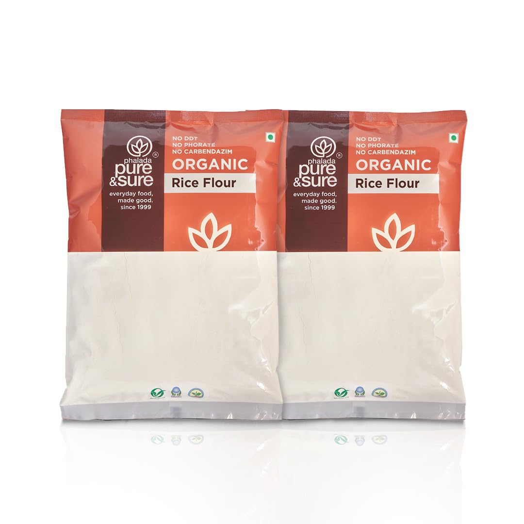 Phalada Pure & Sure Organic Rice Flour 1Kg(Pack Of 2)|100% Natural Gluten Free Chawal Ka AttaVegan&Rich In Protein|Certified OrganicGluten Free&Chakki Ground