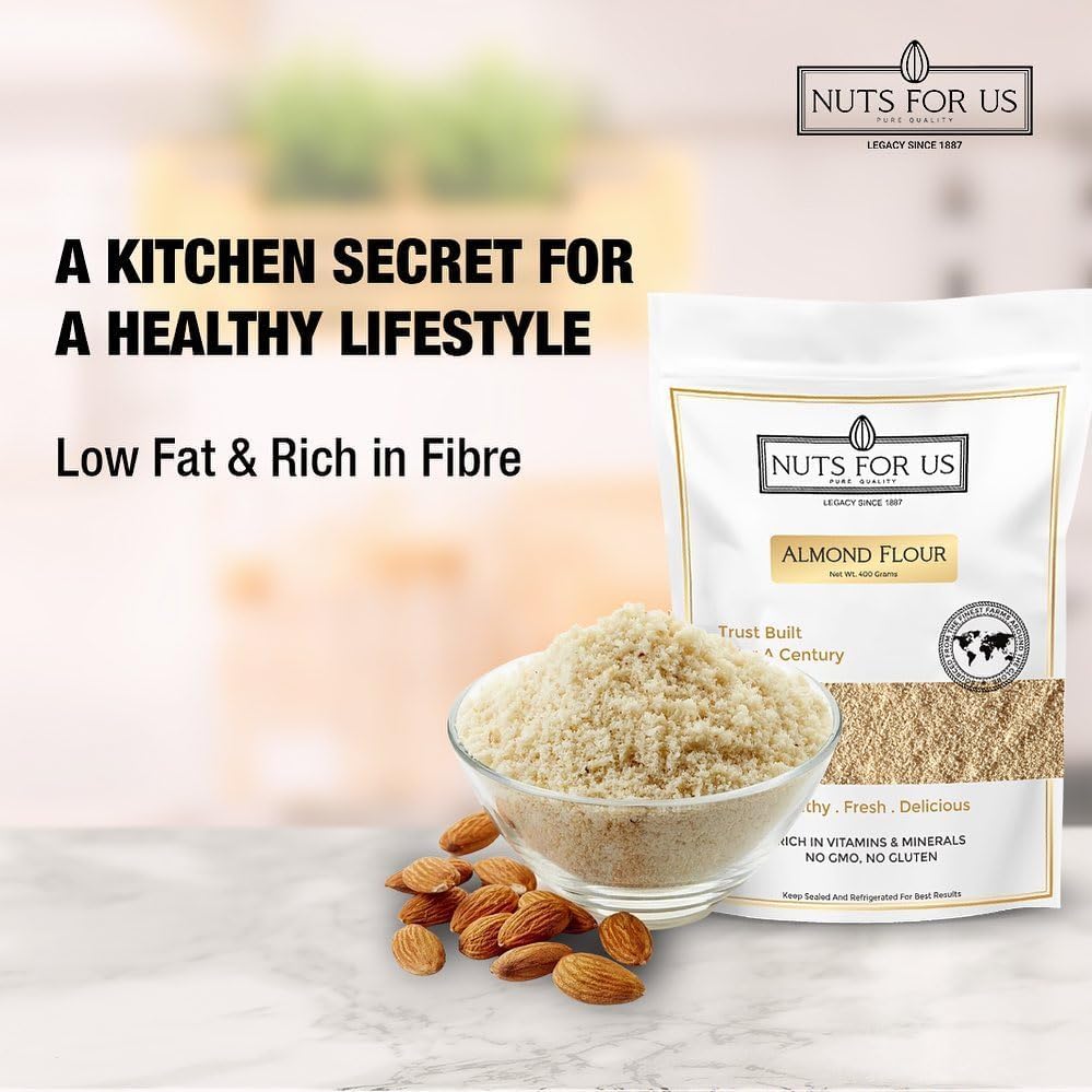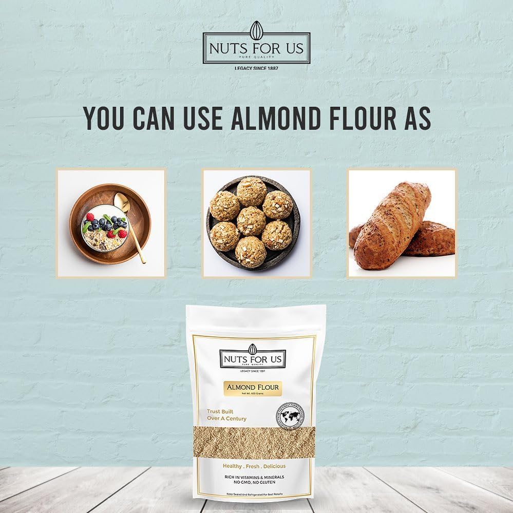 Poiget Nuts For Us Natural Almond Flour 400Gms|Un-Blanched|Naturally Protein-RichHigh FiberLow-CarbKeto-FriendlyGluten FreeAlmond Fine Powder For Baking BreadsCakesAnd Rotis(Atta)