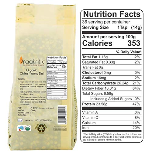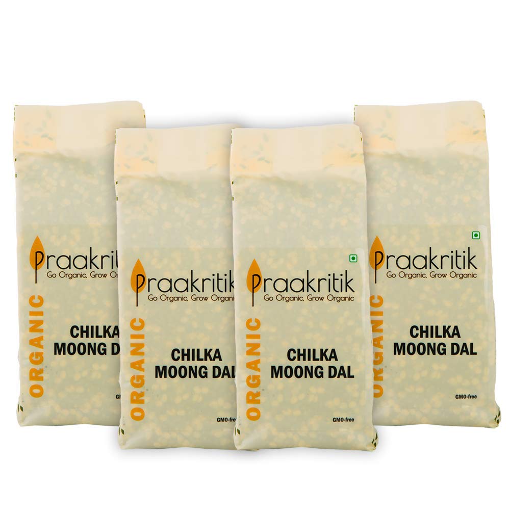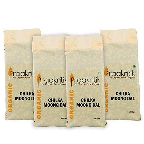 Praakritik Organic Chilka Hara Moong Dal | 100% Organic | 100% Natural | Organic Healthy Pulses | Everyday Use Moong Dal | No Added Preservatives & Colors | Pack of 4 | 500 Grams Each