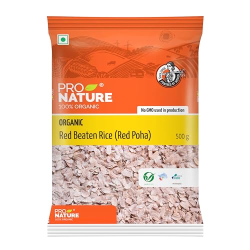 Experience the wholesome delight of Pro Nature Organics' Organic Red Beaten Rice (Rice Poha) a cherished ingredient in traditional Indian cuisine. Organic Red Beaten Rice commonly known as Rice Poha is celebrated for its versatility and nutritional benefits. Low in calories and fat it serves as a light yet satisfying option for breakfast or snacks. Its quick-cooking nature and easy digestibility make it a convenient choice for busy lifestyles. Rich in nutrients and antioxidants Organic Red Beaten Rice offers a wholesome addition to your diet. It is a natural source of essential minerals and vitamins contributing to overall well-being. Whether enjoyed as a nourishing breakfast cereal in savory snacks like chivda or as a base for innovative culinary creations its delicate texture and nutritional richness enhance every dish. Choosing Pro Nature Organics means embracing organic farming practices that prioritize sustainability and purity. Our Red Beaten Rice is cultivated without synthetic pesticides or chemical fertilizers ensuring each batch retains its natural flavor and nutritional integrity. From farm to table we uphold the highest standards of quality and authenticity. Whether you're preparing a wholesome breakfast creating flavorful snacks or exploring new recipes Pro Nature Organics' Organic Red Beaten Rice promises to elevate your culinary experience with its nourishing benefits and delightful flavor. Embrace the goodness of organic purity and enrich your kitchen with this essential pantry staple today!