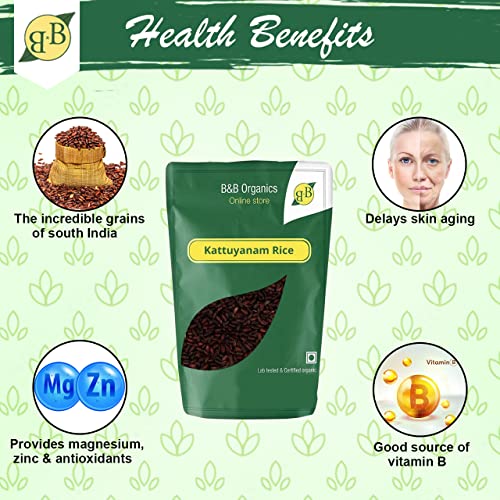 B&B Organics Kattuyanam Red Rice (1 kg) (Hand Pounded Red Rice | Traditional Red Rice | Red Chawal | Katuyanam Arisi | Lal Chawal | Tinni Chawal | Rich in Nutrients)