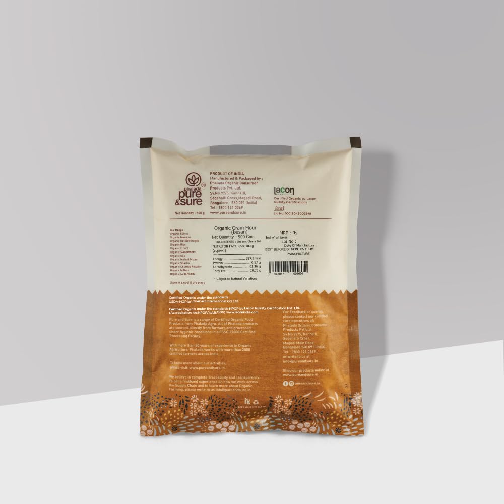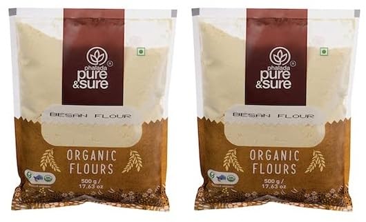 Pure & Sure Organic Besan (Gram Flour) 1Kg | 100% Natually Processed Chickpea Flour | Stoneground Besan Atta | Rich in Protein & Fiber | No Preservatives & Additives| 500gm each (Pack of 2)
