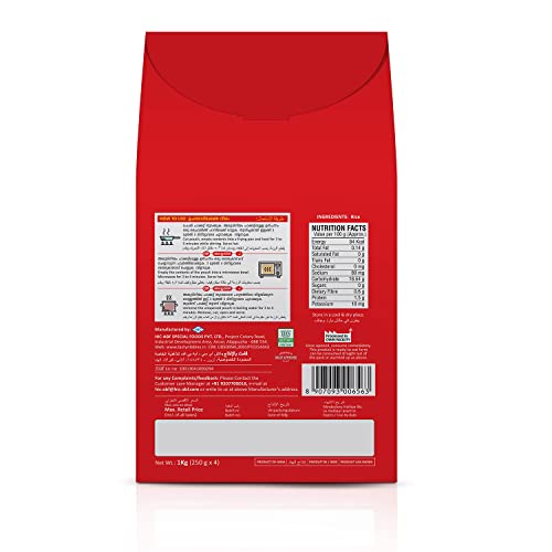 Tasty Nibbles Introducing Ready to Eat Cooked Matta rice prepared from premium quality brown rice. This brings clean fresh tasty and traditional Kerala meals ready in 5 min. It is Ready-to-Eat so can be consumed straight from the pack or warmed up. No Food additives added Heat & Eat. Japanese RETORT Technology. Net weight 1kg (250g x 4) Shelf life 18 months at room temperature HOW TO USE: Cut pouch empty contents into a frying pan and heat for 3 to 5 minutes while stirring. Serve hot. (OR) Empty the contents of the pouch into a microwave bowl. Microwave for 3 to 4 minutes. Serve hot. (OR) Immerse the unopened pouch in boiling water for 3 to 5 minutes. Remove cut open and serve. Once opened consume immediately. This product is ready-to-eat form can be consumed straight out of the pack or warmed up as above. Store in a cool and dry place.