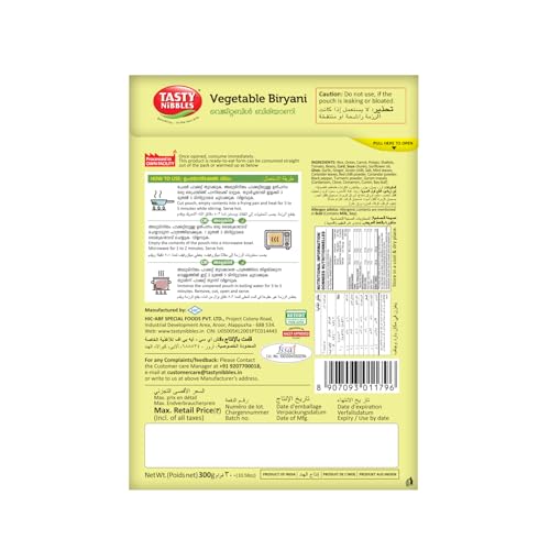 Tasty Nibbles Ready to Eat Vegetable Biryani 300g| Open Heat & Eat | Vegetarian | No Added Preservatives | Japanese Retort Technology