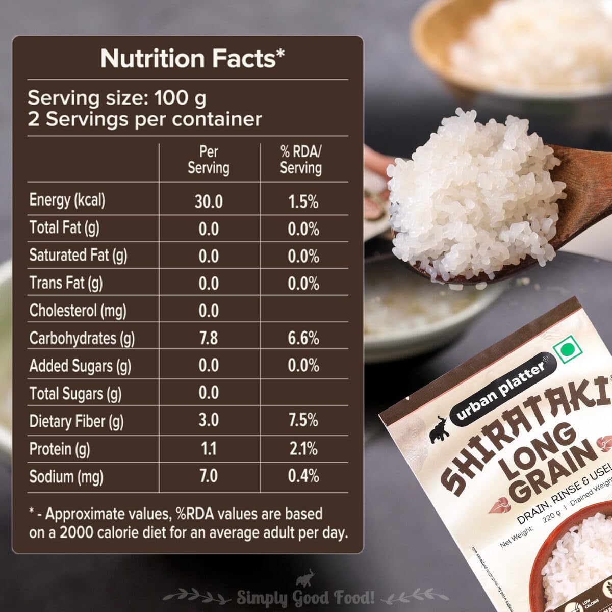 Urban Platter Shirataki Long-Grain Rice 220g (Keto-Friendly | Low-Carb | Low-Calories | Fat-Free | Gluten-Free | Konjac Miracle Rice)