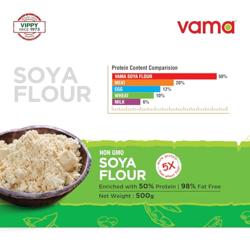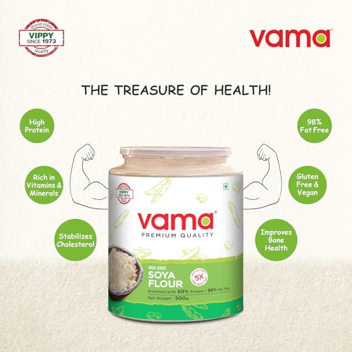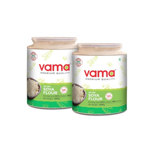 Vama Soya Flour | 98% Fat-free | Vegan | Gluten-free | Pack of 2 500g Each | Healthy products