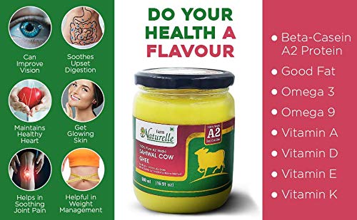 • We Indians believe that pure A2 Cow ghee may benefit in better Brain functioning and Memory improvement in Heart strengthening in increasing Bone density and strength in improving Skin Glow in managing Dark Circles in Hair strengthening in Digestion and W