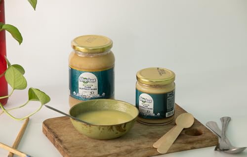 Indulge in the wholesome richness of Absolute Milk Farm Fresh Pure Buffalo Ghee meticulously crafted using traditional methods to bring you a taste of authenticity in every spoonful. Our 190ml jar of homemade organic ghee is a treasure trove of purity and natural goodness.Derived from the milk of grass-fed buffaloes this ghee is a celebration of purity and health. The buffaloes are nurtured on natural diets ensuring the ghee is not just flavorful but also packed with essential nutrients. By adhering to age-old methods of preparation where the butter is slowly simmered to perfection we ensure that every batch retains its natural aroma granular texture and nutritional value.This ghee stands out for its rich content of vitamins A D E and K and its high levels of essential fatty acids making it a healthful addition to any diet. Its anti-inflammatory properties further enhance its health benefits. The distinctive nutty aroma and rich taste of our ghee make it an ideal choice for a variety of culinary uses from sautéing and frying to being the perfect base for savory sauces and traditional desserts.Our commitment to sustainability is evident in every jar which is packaged with attention to environmental responsibility and designed for freshness and convenience. Absolute Milk Farm Fresh Pure Buffalo Ghee is not just a product but an experience that reconnects you with the roots of traditional healthy living.