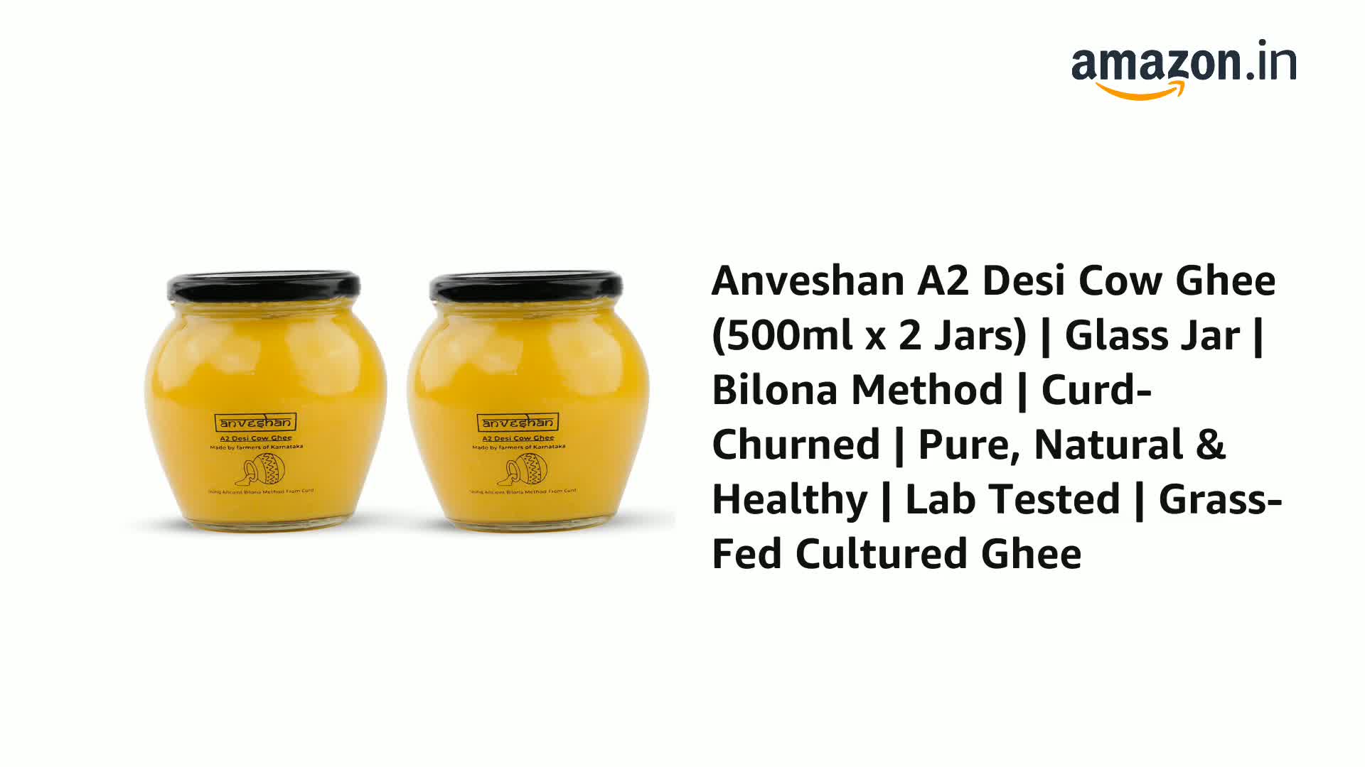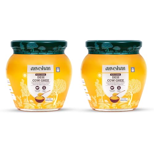 Anveshan A2 Desi Cow Ghee (500ml x 2 Jars) | Traditionally Bilona-Churned, Danedar Ghee | Aromatic| NABL Lab Tested (70+ tests), Cruelty-Free | Grass-Fed | Glass Jar