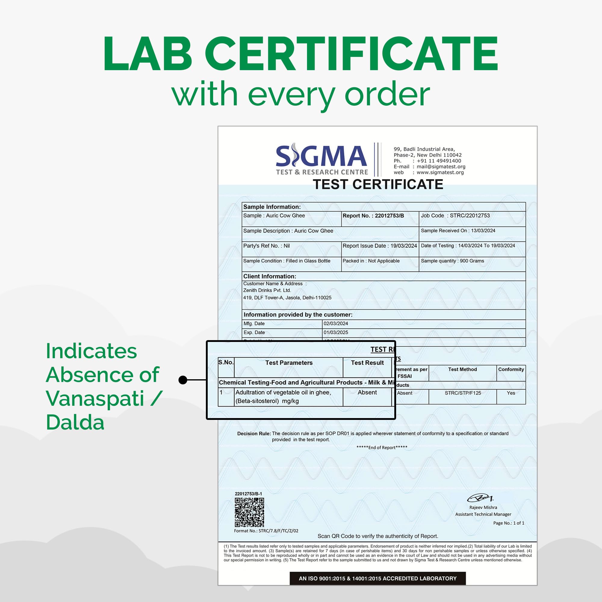 LAB TESTED: Our Desi ghee is Lab Tested & certified by FSSAI US FDA & International food safety standards. It is pure preservative free and chemical free.