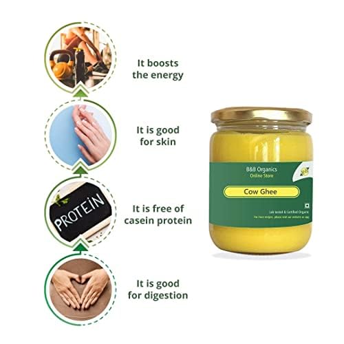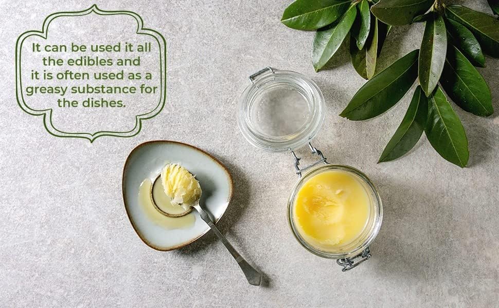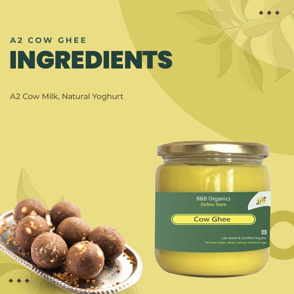 A2 cow ghee: It is good for skin. It is good for digestion. It can be used in all the edibles Cultivation: It is made up of A2 cow milk. The A2 ghee is processed 35 liters of A2 milk into curd which is hand-churned to obtain makkhan and finally get 1 liter of Divine A2 Ghee Health Benefits (Imprecise) : It is good for digestion It is good for skin It is free of casein protein Nutritional Value: Nutrient Per 100g* Protein (g) -0.04 Fat (g)- 1.3 Vitamin E (g)-0.4 Choline -2.7