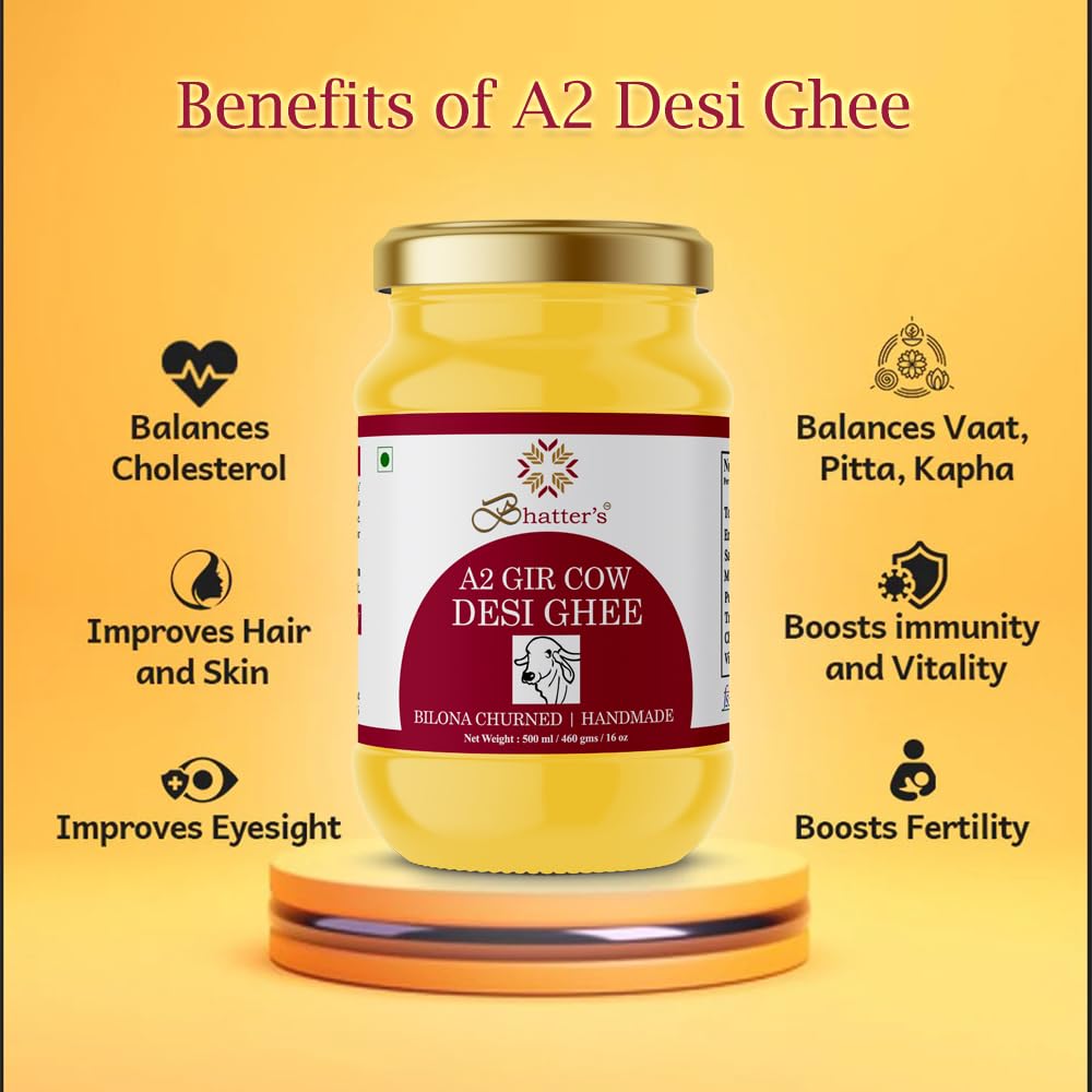 Bhatter's Premium A2 Gir Cow Cultured Desi Ghee is a quintessential addition to any health-conscious kitchen, meticulously crafted through the traditional Vedic Bilona method, which involves a two-way churning process to ensure the highest quality and flavor. Sourced exclusively from Indian Gir cows, this pure A2 ghee is renowned for its rich nutritional profile, offering a plethora of health benefits, including enhanced digestion and improved immunity. Each 500 ML jar is lab certified, guaranteeing that it is free from genetically modified organisms (Non-GMO) and is entirely natural, making it an ideal choice for those seeking wholesome and authentic culinary ingredients. The distinct aroma and golden hue of this ghee not only elevate the taste of your dishes but also embody the essence of traditional Indian cooking, allowing you to indulge in a product that is both delicious and beneficial for your overall well-being.