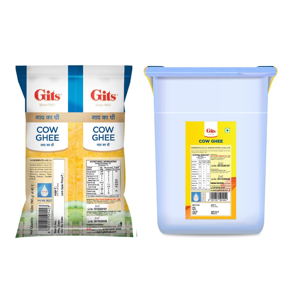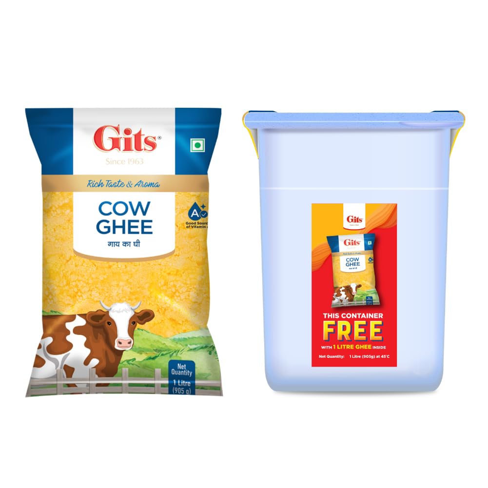 Gits Cow Ghee 1L Pouch with Free Container