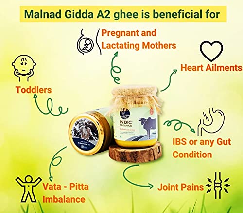 Indic Organics Forest Grazing Rare Malnad Gidda Desi Cow'S A2 Ghee From Western Ghats Of Karnataka Ayurvedic & Medicinal Bilona Ghee Rare Combination Of Naturally Balanced Omega 3:6:9 Ratio (500 Ml)