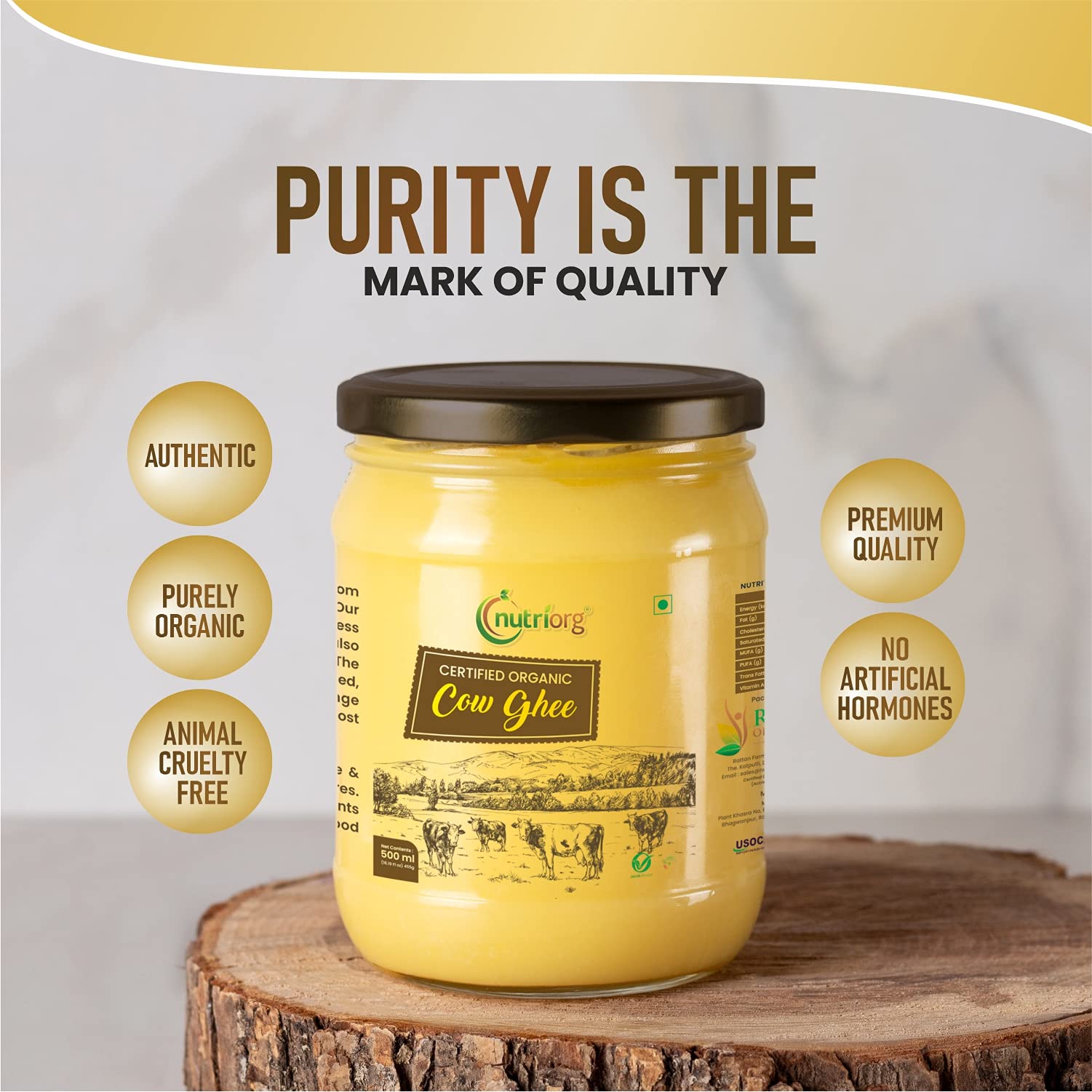 The omega-3 fIn organic farms cows are fed grass and grass-based foods organic milk and ghee made from organic milk contain a higher quantity of beta-carotene than conventional grain-fed cows. Beta carotene works for the good health of the body and skinca