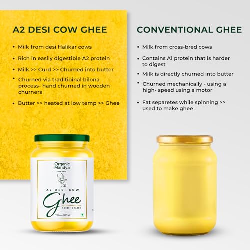 • Nutrient-rich: Desi A2 ghee is rich in essential nutrients like vitamins A D E and K. These vitamins play a vital role in supporting various bodily functions including vision bone health immune function and blood clotting