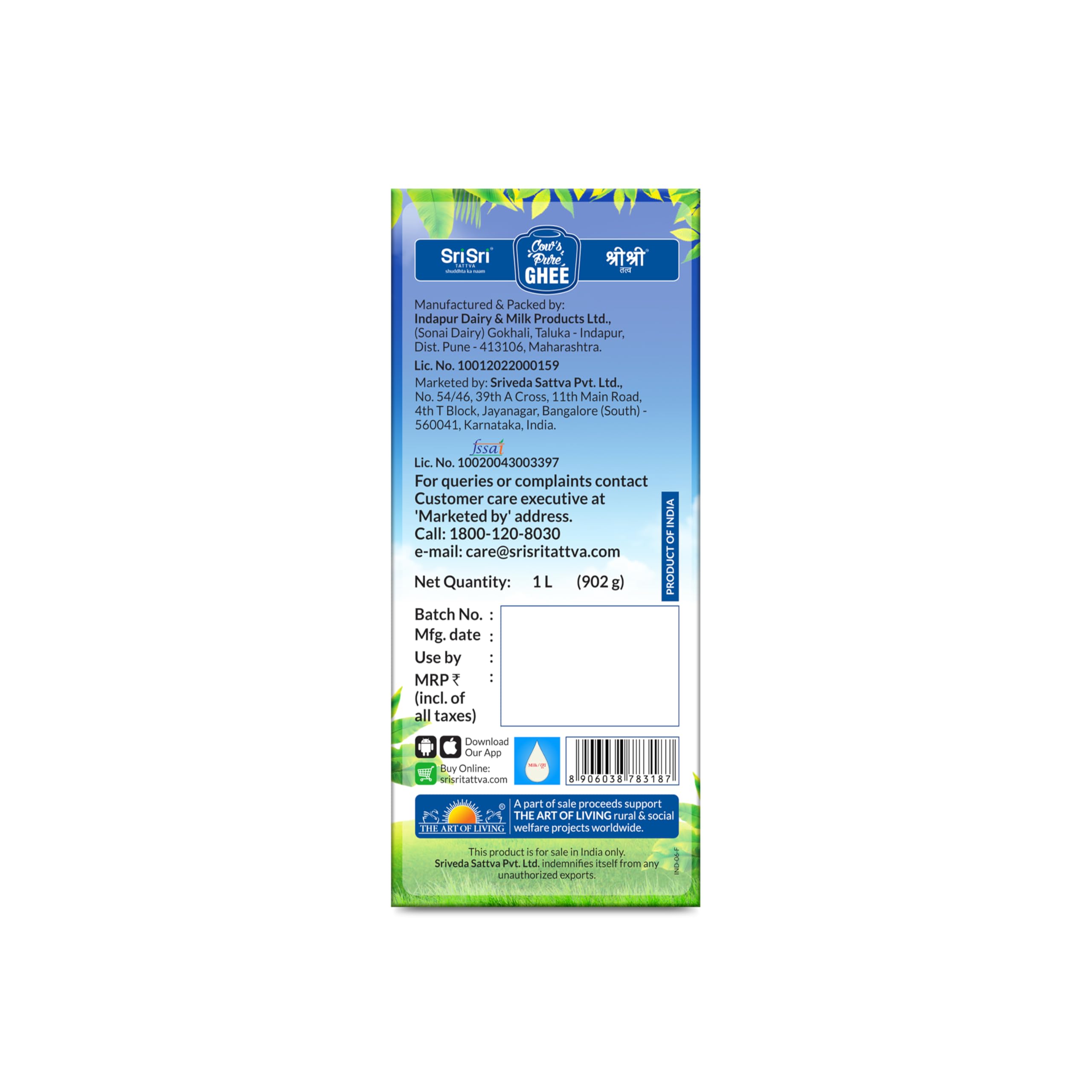 Rich in aroma and texture ghee kindles the digestive fire in the body contributing to a better nutrition. Sri Sri Products pure desi ghee is manufactured using high quality cow's milk in the most hygienic and safe conditions to ensure its purity and quality. Add delicacy to your life with sri Sri Products ghee.