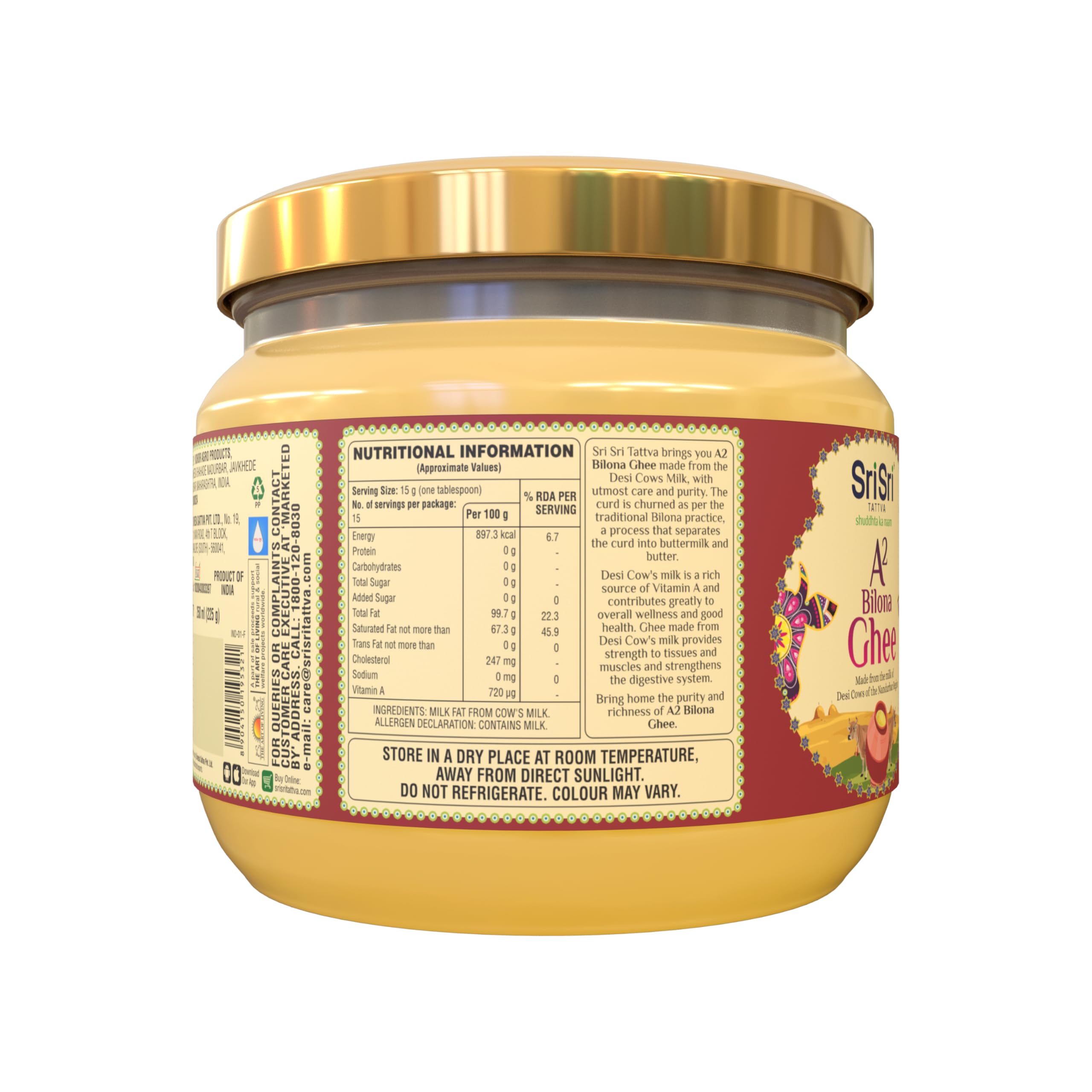 Discover the rich and nutty flavor of Bilona A2 Ghee. Made from the milk of grass-fed Bilona cows it is packed with essential vitamins and fatty acids. Sourced from organic dairy farms this 250 ml jar is perfect for cooking baking and adding a burst of flavor to your meals.