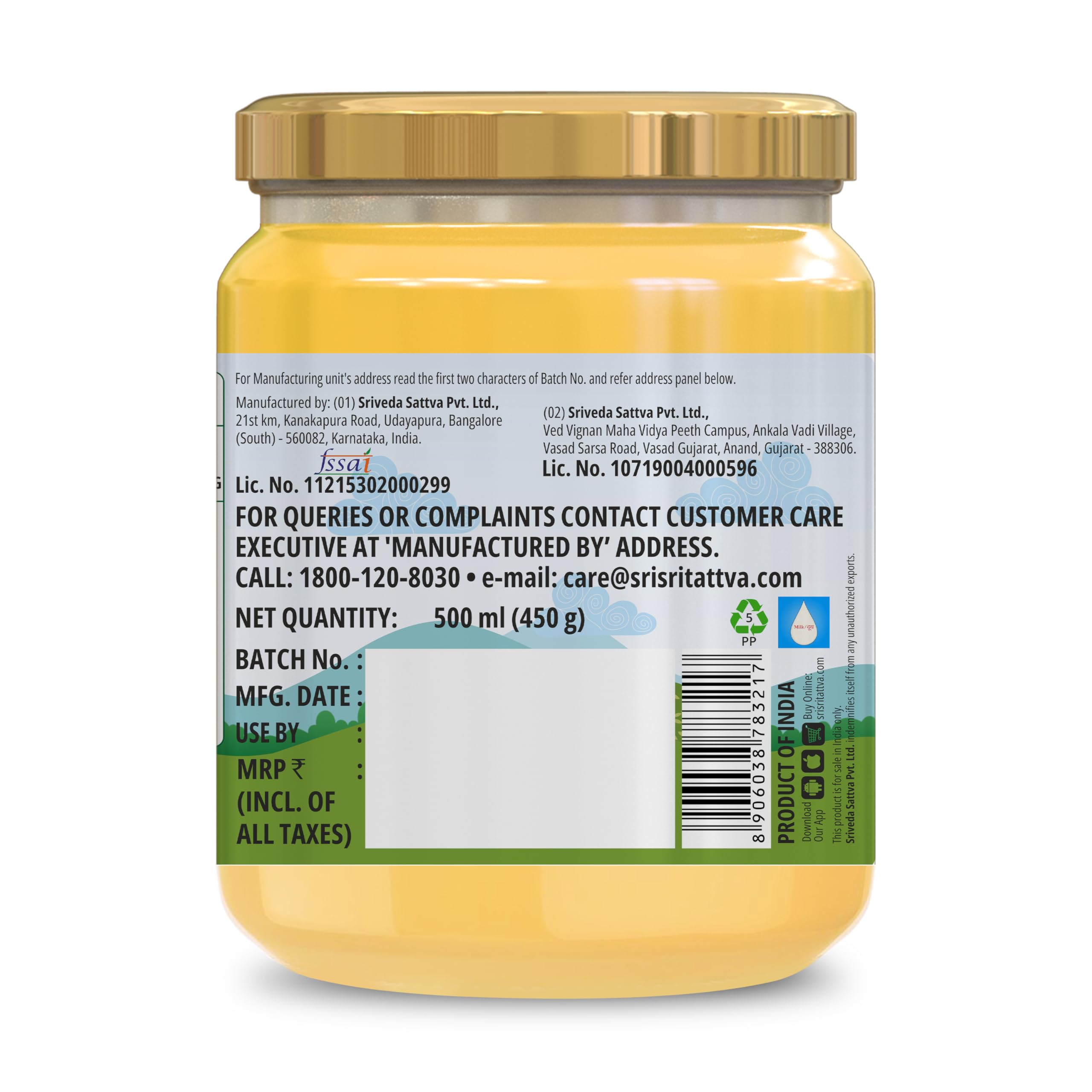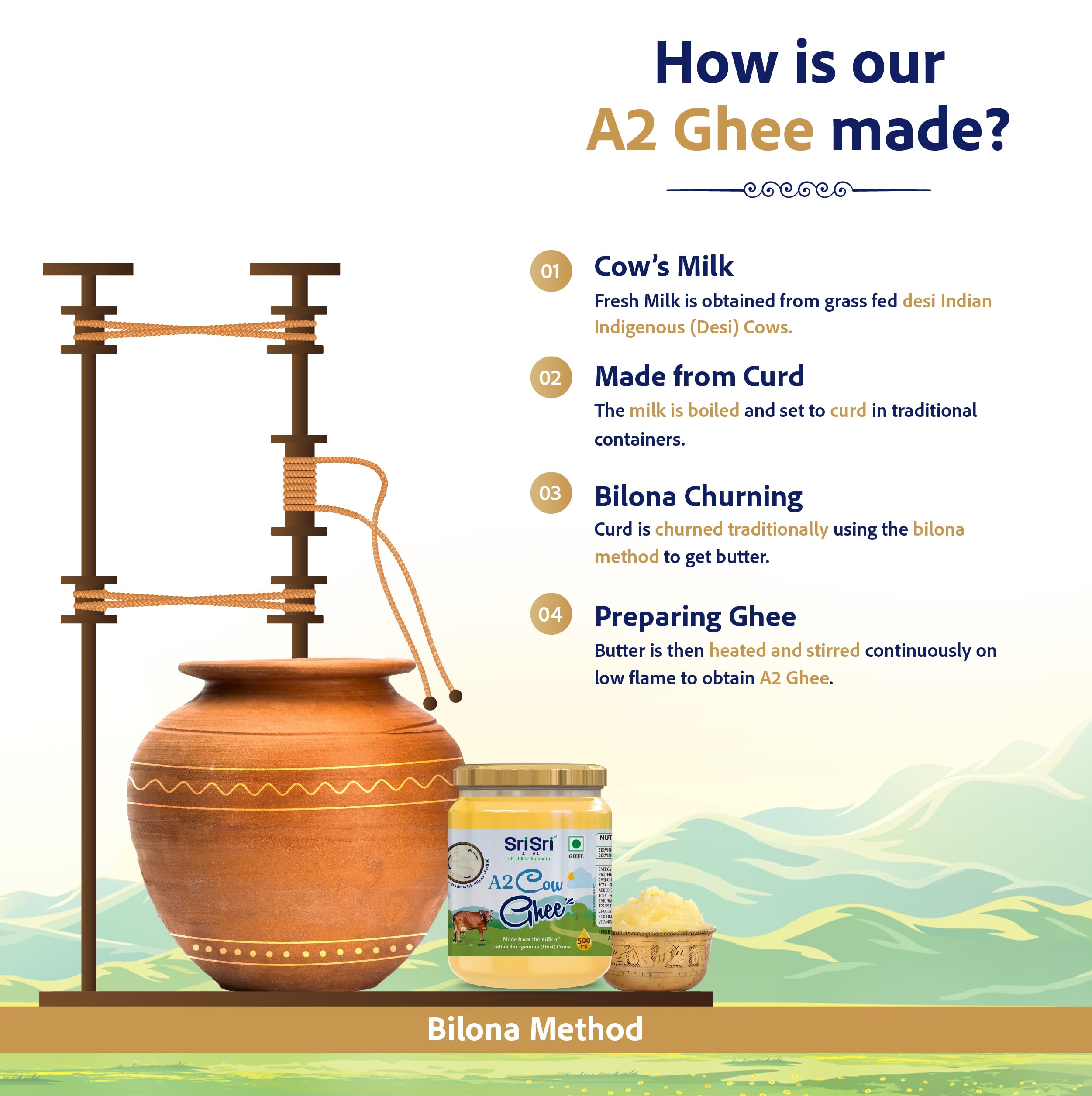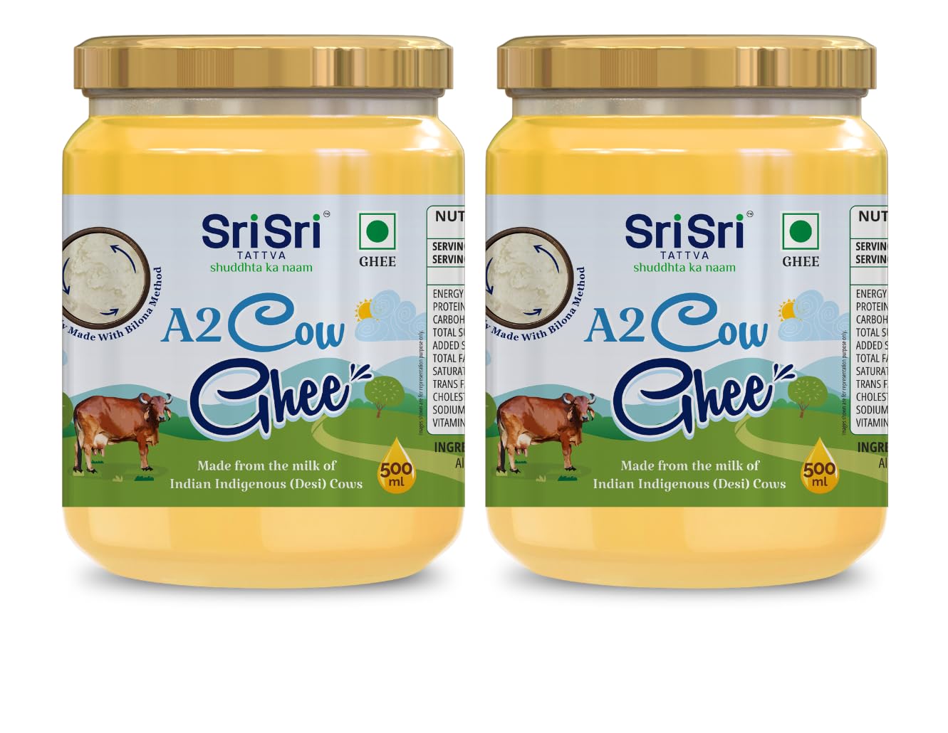 Discover the richness of history and the purity of nature with our A2 cow ghee now available online at Sri Sri Tattva. Our A2 cow ghee is made with care using ancient methods to ensure originality and purity. It's devoid of artificial additives and preservatives making it an excellent choice for health-conscious people looking for the best A2 ghee online. You may improve your culinary creativity add richness to your daily foods and enjoy the incomparable advantages of this pure and nutritious superfood with Sri Sri Tattva's A2 cow ghee. Our A2 cow ghee is the epitome of natural deliciousness whether used in cooking baking or as a daily supplement. Enjoy the flavor and discover the health benefits of A2 cow ghee online with Sri Sri Tattva. Order your bottle today and experience the pure organic sweetness passed down through centuries.