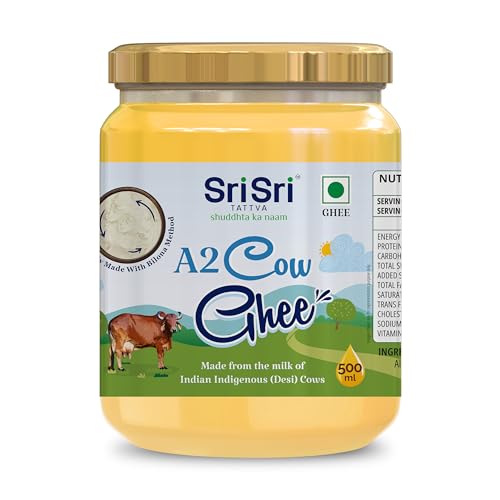 Sri Sri Tattva brings you Pure Desi Ghee made from the milk of A2 milk of Desi Cows with utmost care and purity. Desi Cow's milk is known to be a rich source of Vitamin A which contributes to overall wellness and good health. Ghee made from Desi Cow's milk provides strength to tissues and muscles and strengthens the digestive system.