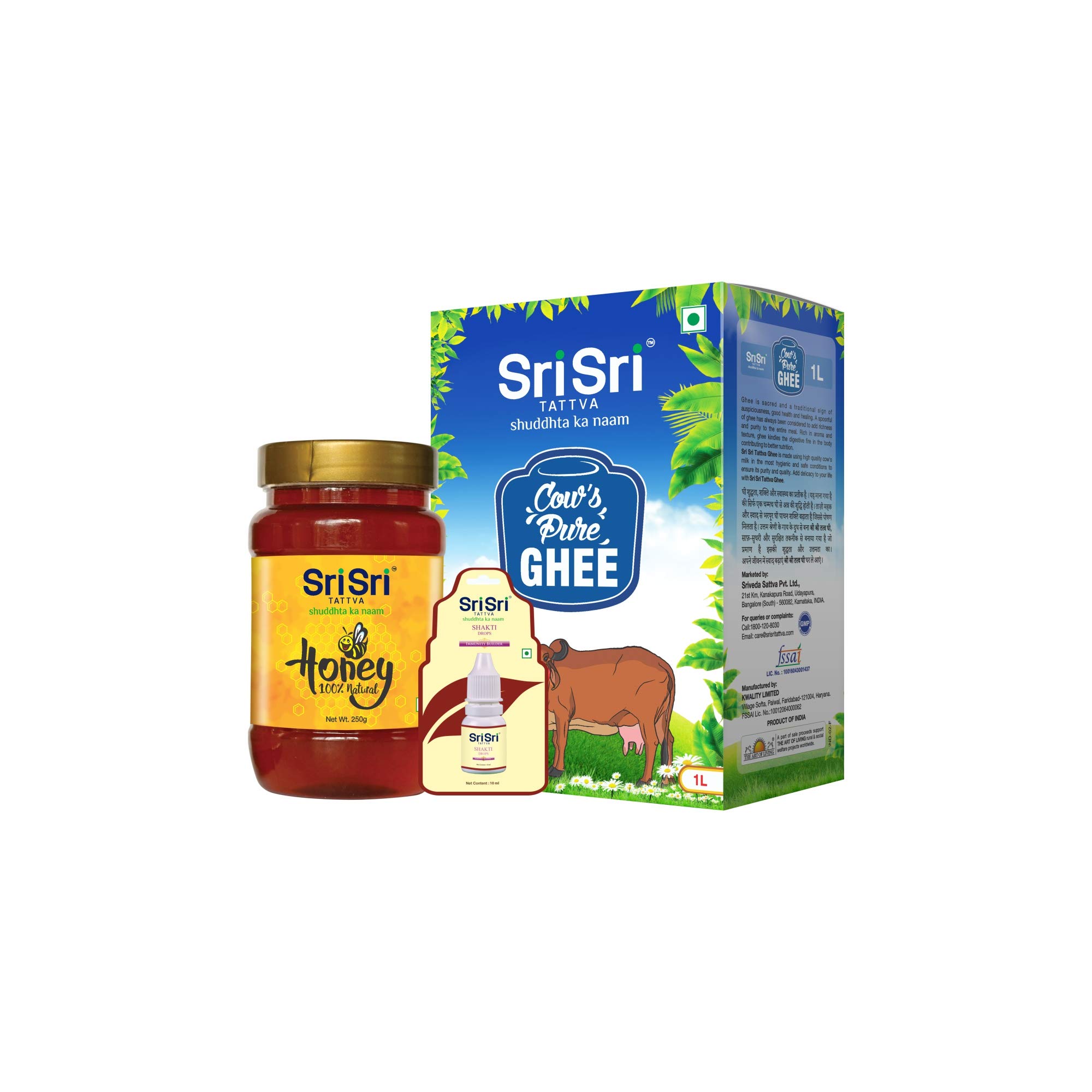 Ghee is sacred and a traditional sign of auspiciousness good health and healing. A spoonful of ghee has always been considered to add richness and purity to the entire meal. Rich in aroma and texture ghee kindles the digestive fire in the body contributing to better nutrition. Sri Sri Tattva Ghee is made using high-quality cow's milk in the most hygienic and safe conditions to ensure its purity and quality. Add delicacy to your life with Sri Sri Tattva Ghee. Honey is made by bees foraging nectar from flowers. Since ancient times honey has been used as a versatile ingredient and adds flavour to different kinds of foods. Honey is rich in vitamins & minerals which boost your immunity and keep you healthy. One scoop of honey instantly makes you energetic and revitalized to take on the day. If you are looking for the best stamina and strength builder get Shakti Drops for not just you but your entire family. It is a herbal concoction made with beneficial herbs such as Stavari Yashtimadhu Brahmi Bhringaraj Amla Ashwagandha Amruth and Shankhpushpi.