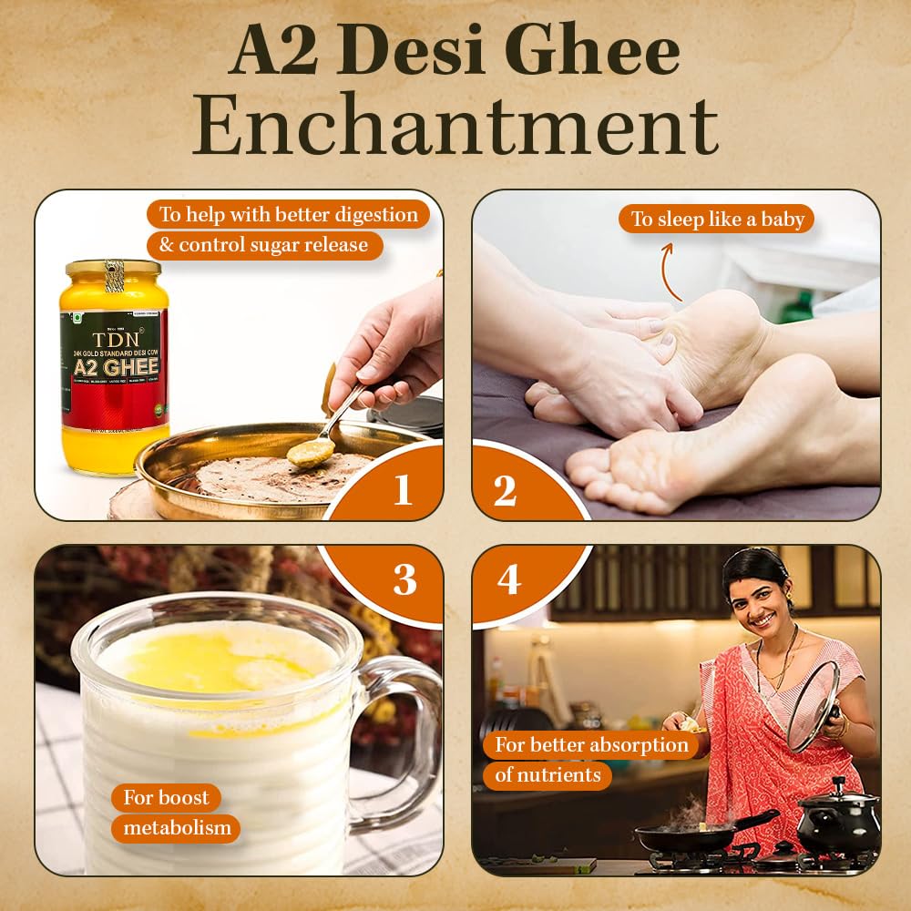BILONA CHURNED DESI GHEE: Made from pure A2 milk of grass-fed kankrej cows of north region of Gujarat and South Region of Rajasthan around Aravali forest Hill. TDN A2 Cow Desi ghee is Handcrafted in small batches to preserve its natural goodness