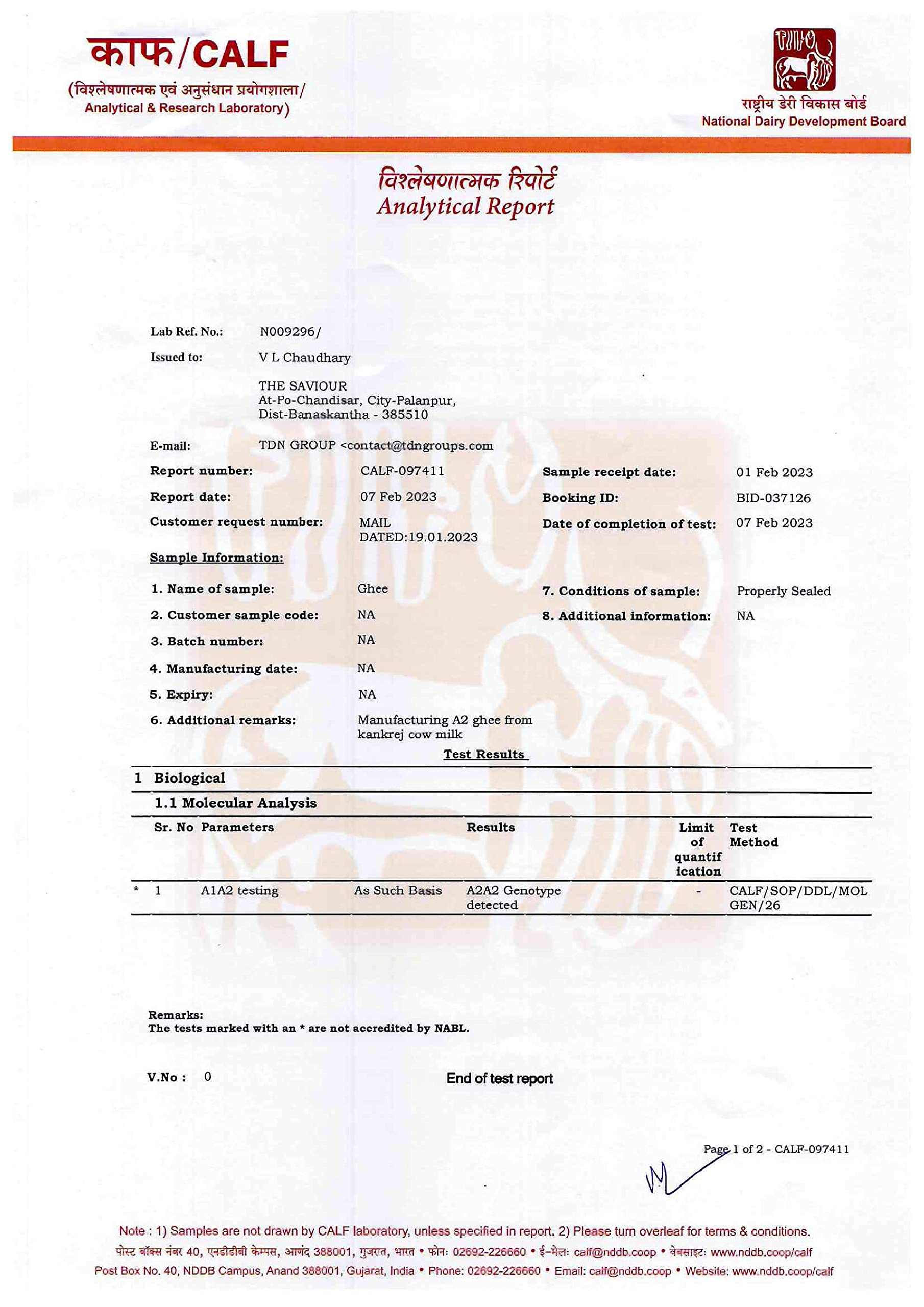 LAB CERTIFIED: TDN A2 ghee Bilona method is a A2 lab certified by NDDB (National Dairy development board) USFDA compliance certified FSSAI certified.
