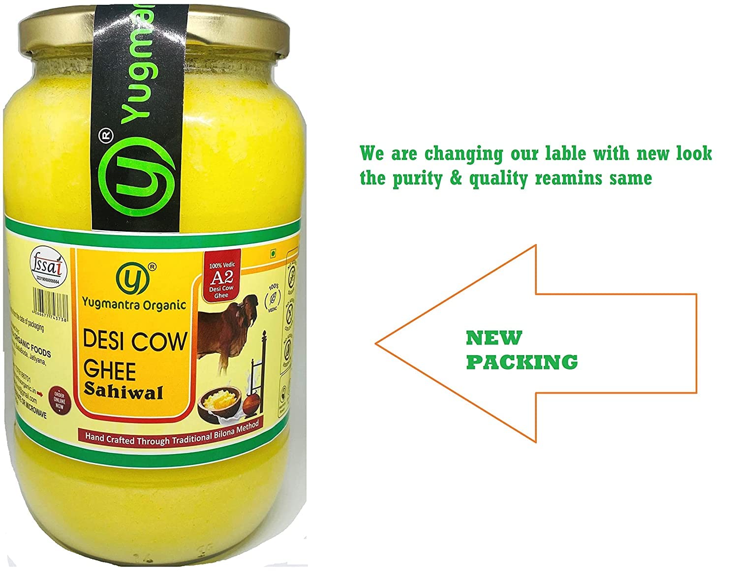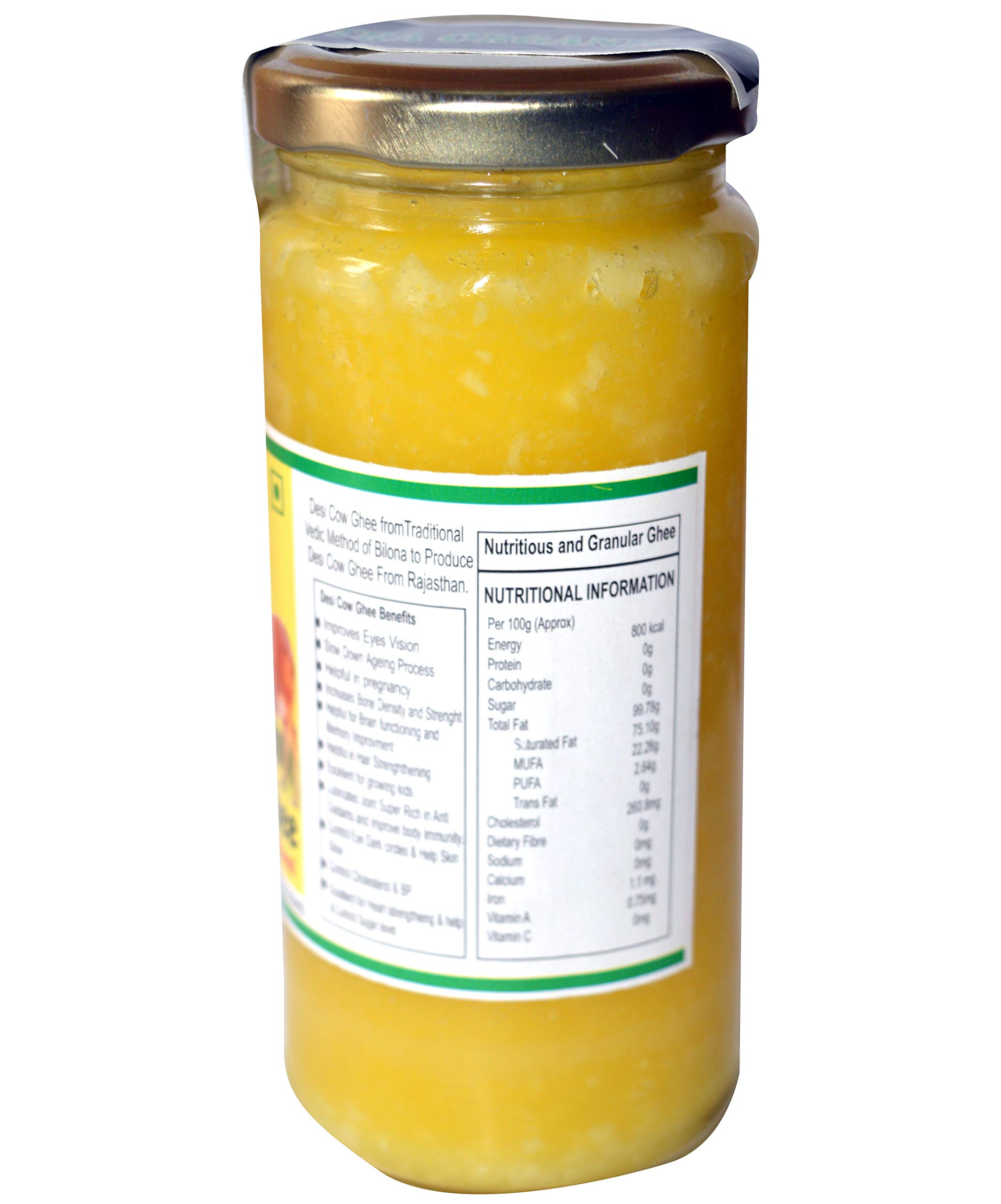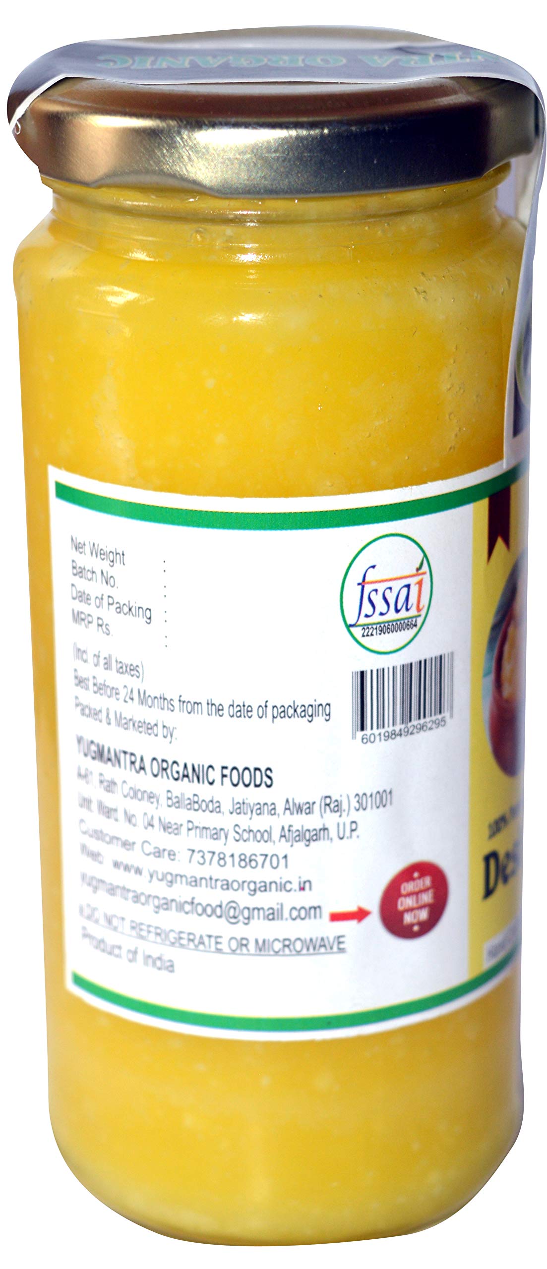 Yugmantra Organic Foods Pure Natural A2 Milk Shudh Desi Sahiwal Cow's Ghee from Alwar Traditional Vedic Method of Bilona to Produce Desi Ghee: Milk-Curd-Churn Curd in Clay Pots-Extract Butter-Heat the Butter-Granulated Yellow Cow Ghee is produced We believe it to be excellent for growing kids Power house of Vitamins that promotes good health and is super rich in anti-oxidants to improve body immunity.