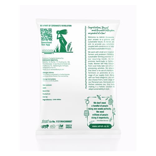 Adrish Zerowaste Organic Little Millet (200gm) - Organic | Unpolished Millets | Gluten Free Millet | High Plant Protein| Protein Rich & More Fiber than Rice
