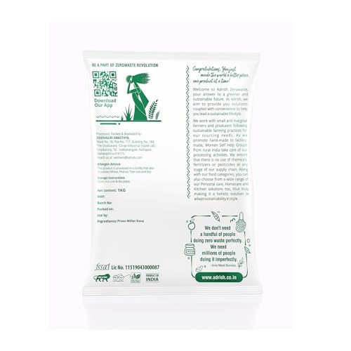 Adrish Zerowaste Organic Proso Millet Rava (1000gm) - Unpolished Millet Suji | Stoneground Millet Rava Upma | Proso Millet Upma Rava | High Plant Protein & Fiber