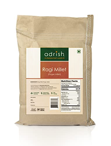 Adrish Zerowaste Organic Ragi Whole (5kg) - Unpolished Finger Millet | Gluten Free Nachni | Whole Grain Ragi | High Plant Protein & Fiber