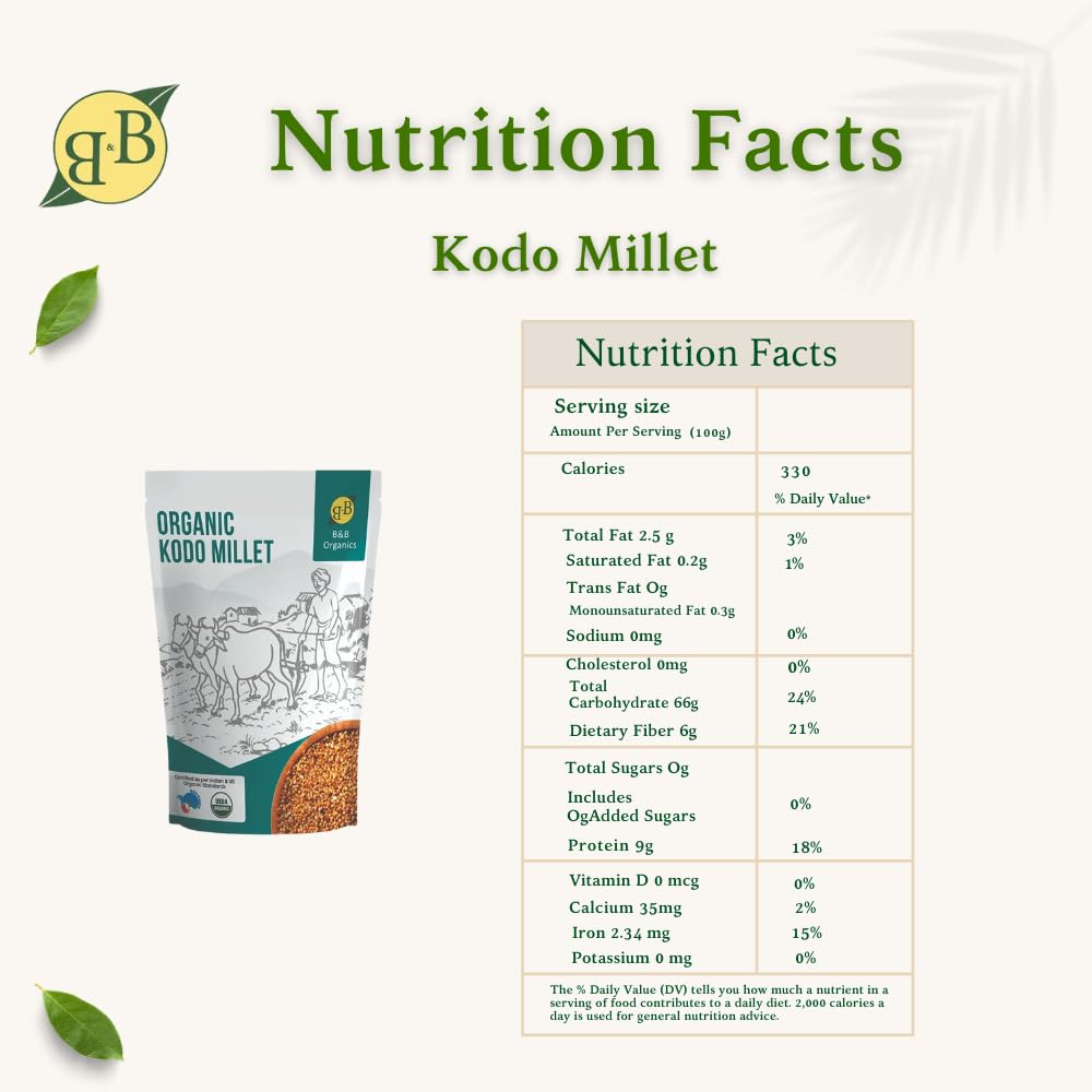 B&B Organics Kodo Millet (500 grams)/Varagu Arisi/Traditional Millet/Sridhanyam