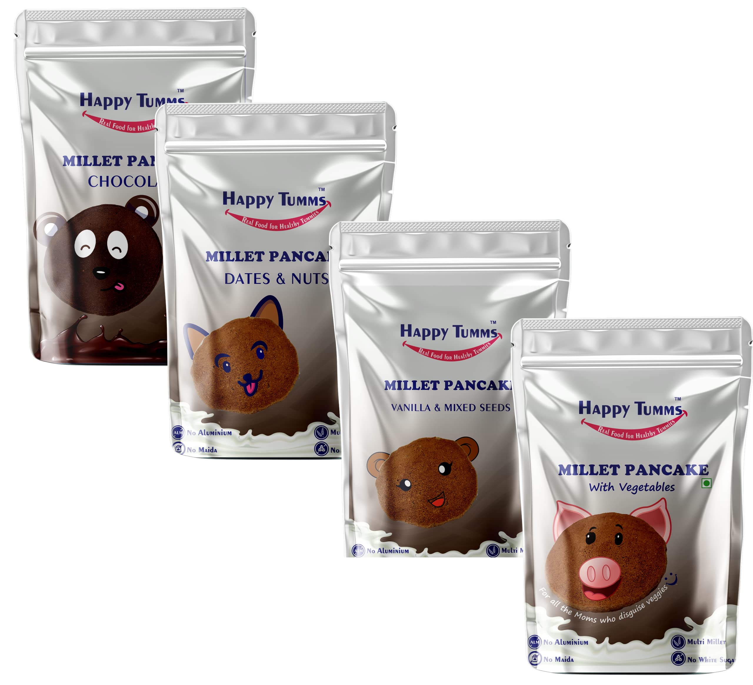 Happy Tumms Aluminium-Free Pancake Mixes | Millet Pancake Mixes with Chocolate, Dates & Nut Flakes, Seeds and Veggies | Healthy Organic Pancake Mix for Kids Toddlers without Maida | Healthy Instant Breakfast Mix No Maida No White Sugar | Gift For Kids | 4