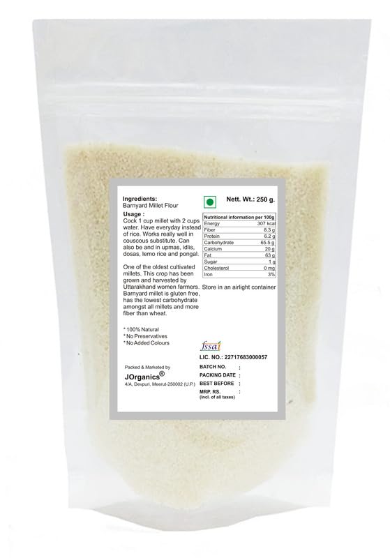 JOrganics Barnyard Millet Samak ke Chawal 250gm Barnyard Millet | Sanwa/Bhagar/Kuthiraivally/Udalu | Ideal for FASTING | Unpolished No Soaking Required | High Plant Protein and Fibre/Samak Millet Whole Grain
