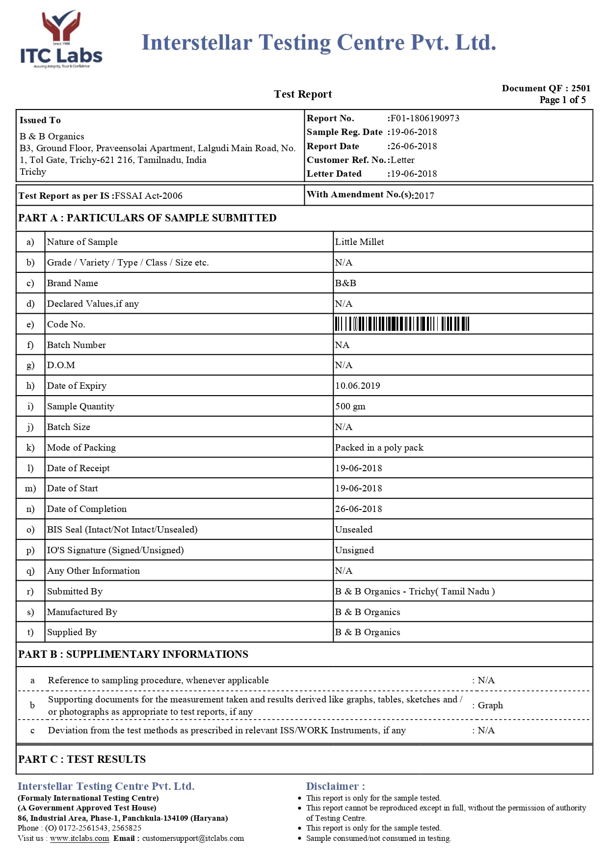 Its Very necessary that people should eat good quality food to live Active Lifestyle. Food laden with chemicals can't be good. That's why B&B Organics procure their products from certified farmers B&B Organics periodically lab test their organic products to maintain its standard and to prevent contamination. We Brings up fresh organic daily needs products like Sugarcane Jaggery Powder, Brown Top Millet, Fenugreek Seeds, Coriander Seeds and Much More. So order now and Enjoy Healthy Lifestyle.