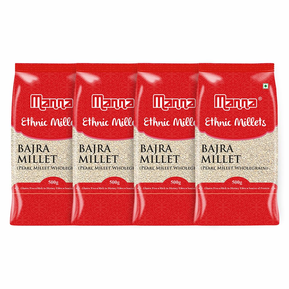 Manna 100% Whole Grain Bajra Pearl Millet Natural Grains Sajje Kambu Pindi Sajjalu Bajri 2kg (500g (Pack of 4))