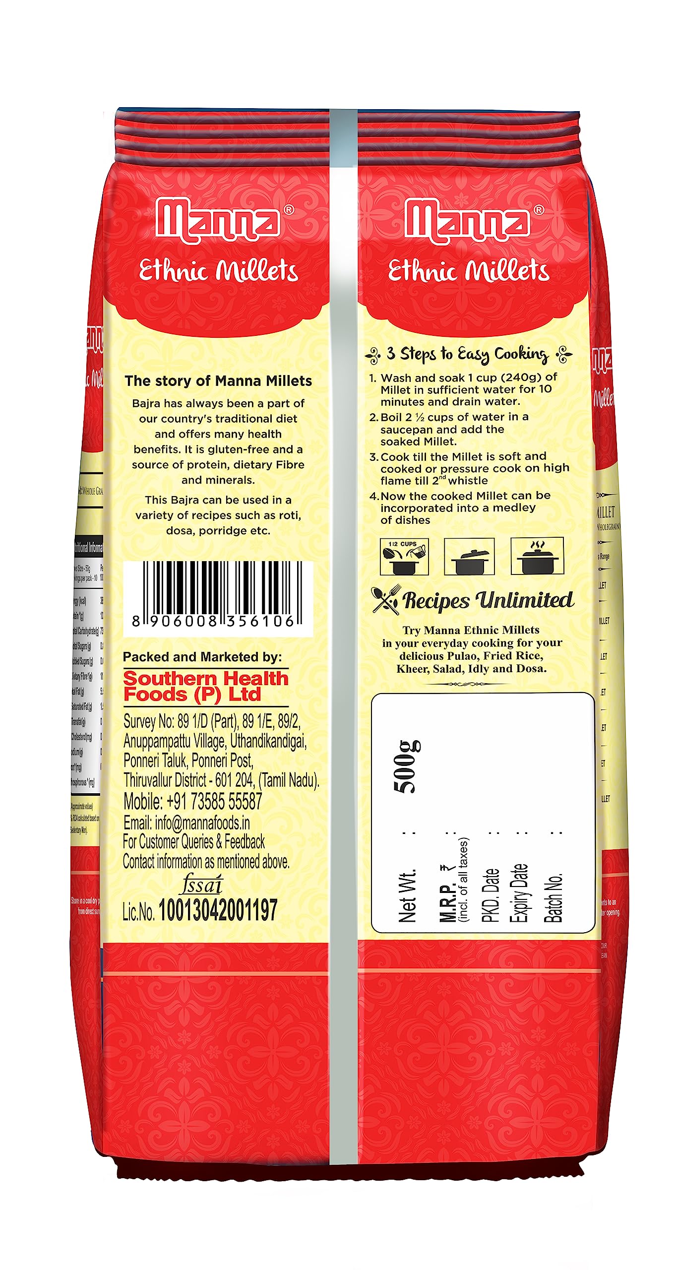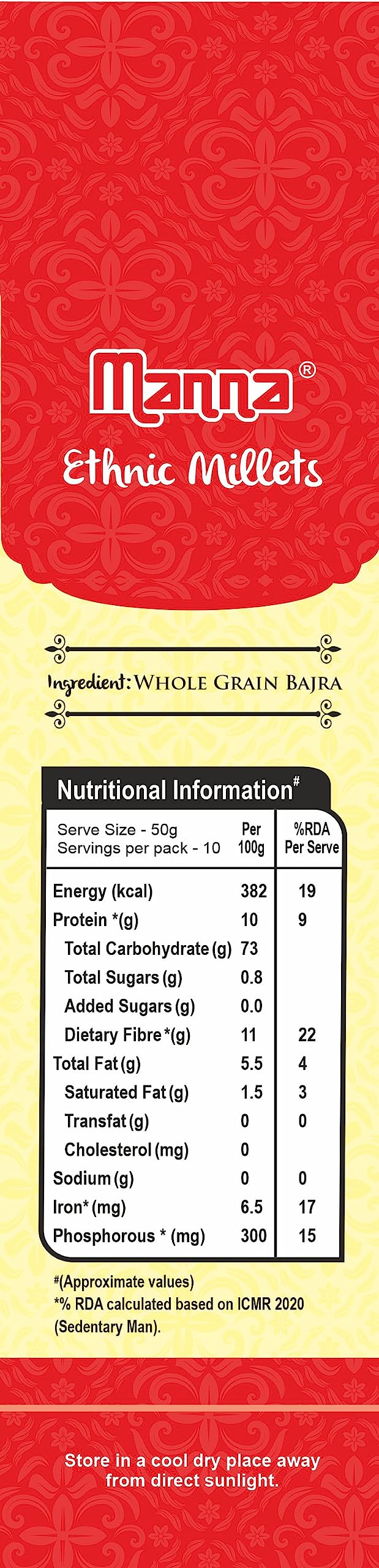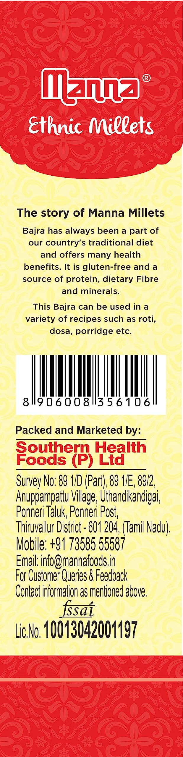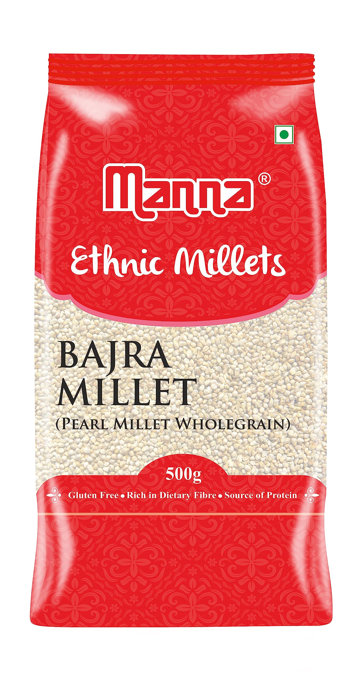 The Story of Manna Millets Bajra has always been a part of our country's traditional diet and offers many health benefits. It is gluten free and a source of protein dietary fibre and minerals. Bajra can be used in a variety of recipies such as roti dosa porridge etc.