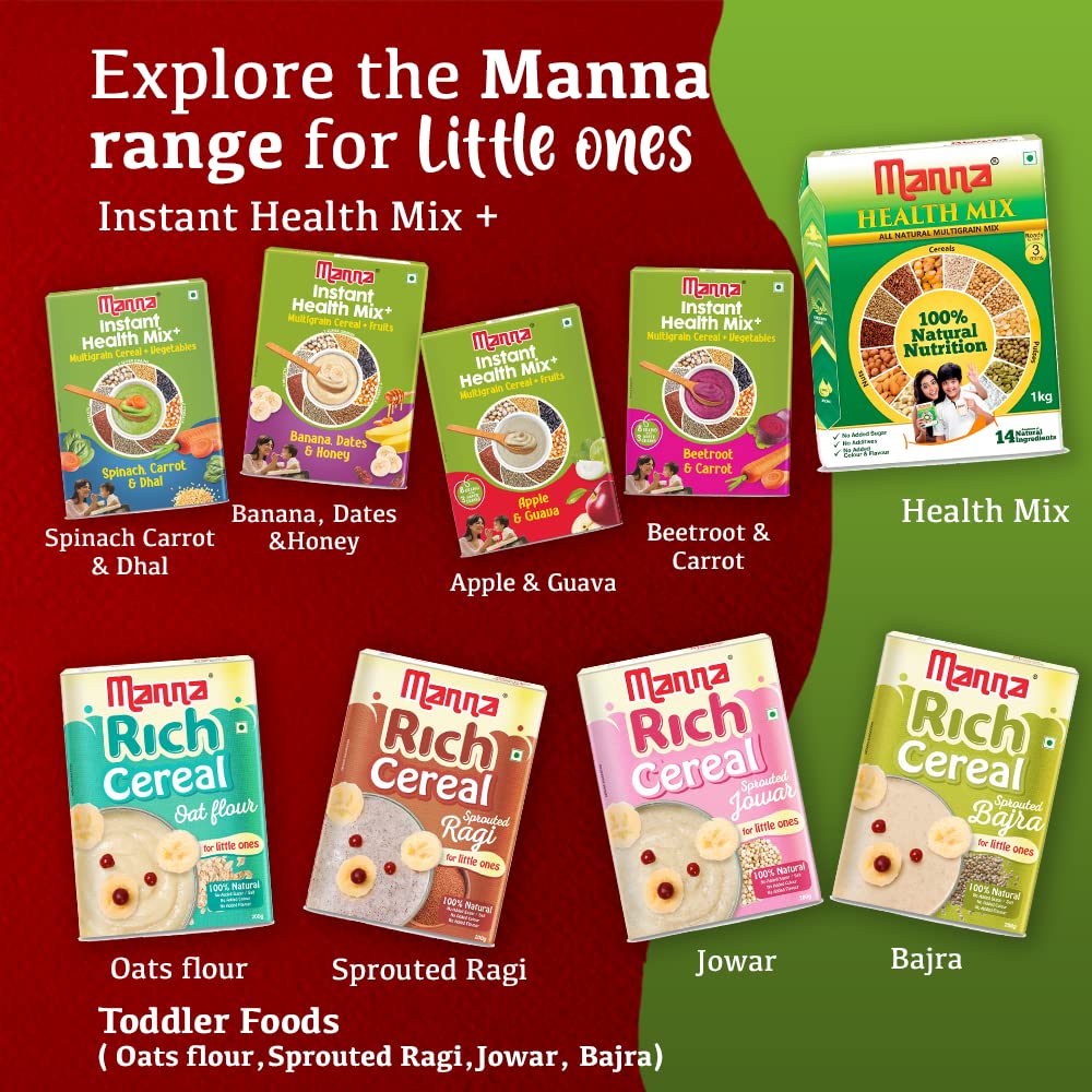 HomeGroceryCookingThe Millet StoreManna Health Mix Instant Multigrain Cereal Apple & Guava with Milk. Made with Real Fruits and 8 Supergrains and Millets. No Added Sugar No Artificial Color Flavors 200g