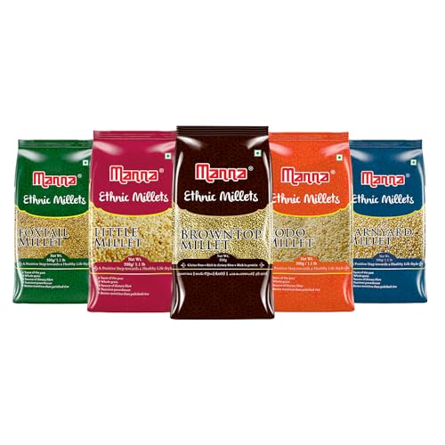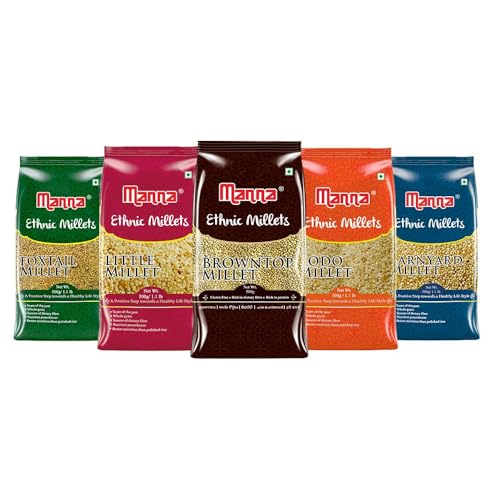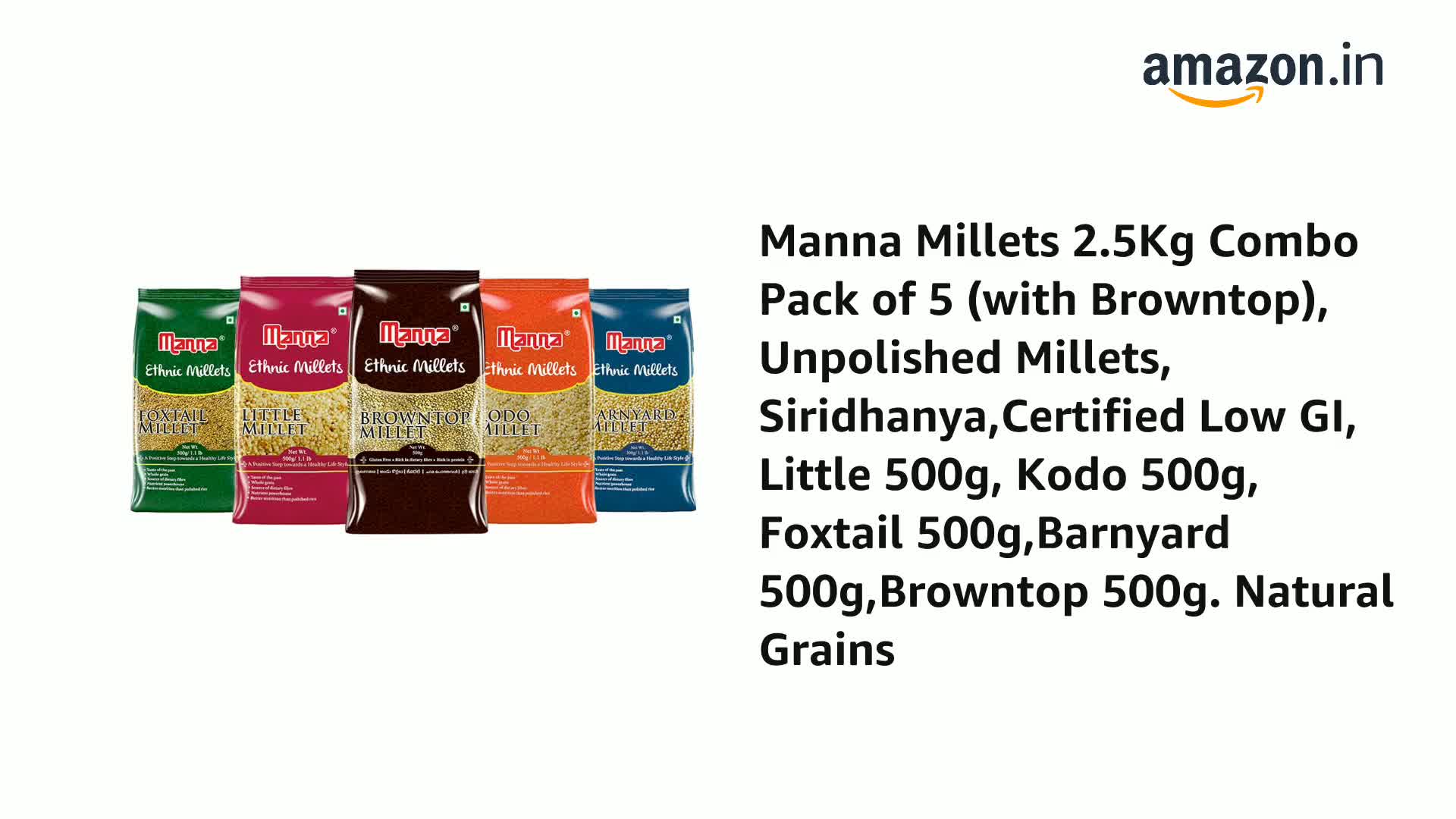Manna Millets 2.5Kg Combo Pack of 5 (with Browntop) Unpolished Millets SiridhanyaCertified Low GI Little 500g Kodo 500g Foxtail 500gBarnyard 500gBrowntop 500g. Natural Grains